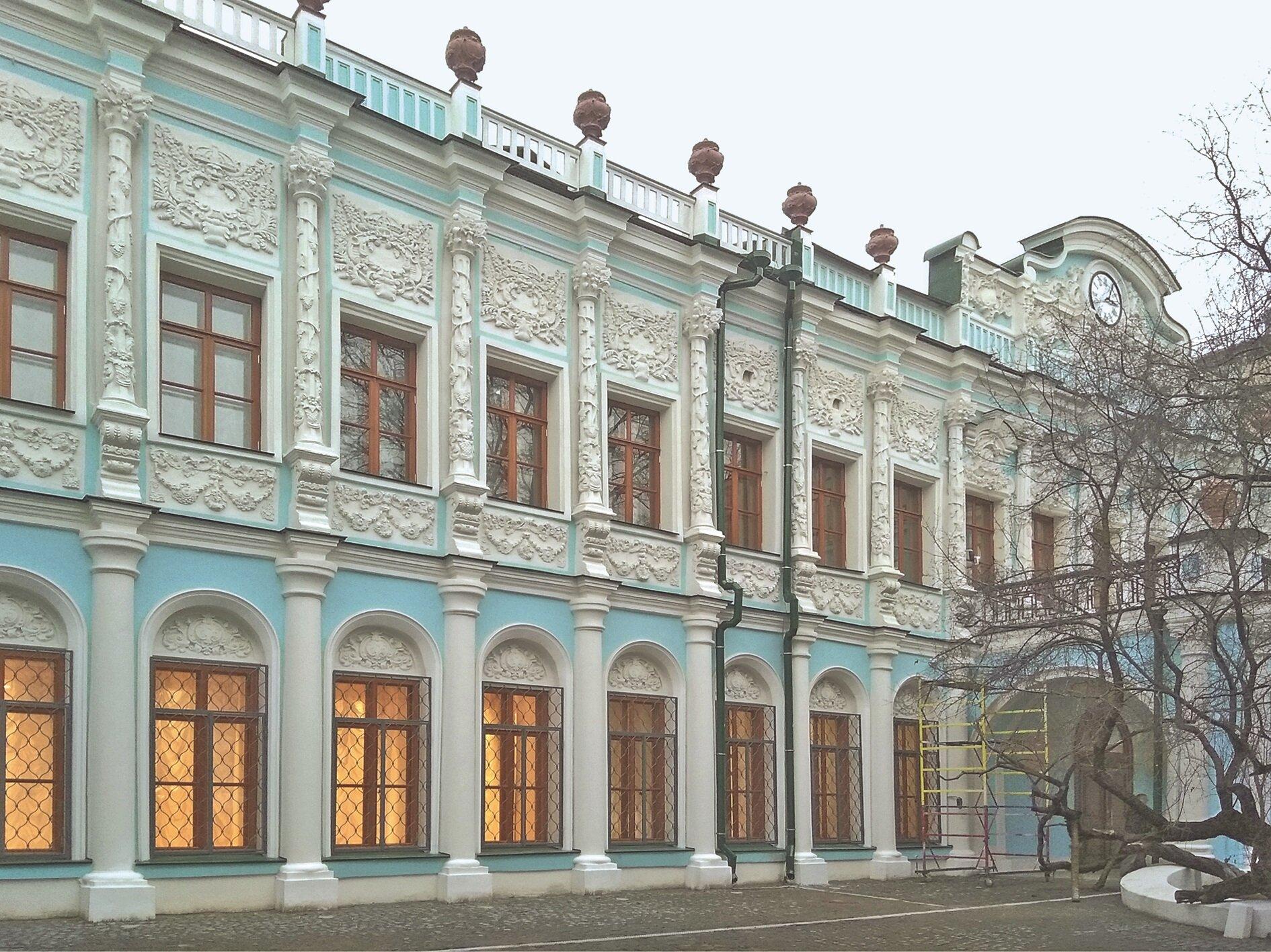 В ходе реставрации были проведены масштабные работы по восстановлению исторического облика здания. В подвале отреставрировали белокаменные стены палат, кирпичные своды и чугунные колонны. На первом этаже восстановили стены и своды, подоконники, кирпичные кладки столбов и арок балкона. Особое внимание специалисты уделили реставрации всех кирпичных и металлических сводов Монье, доломитовых ступеней и чугунного ограждения парадной лестницы, лепных карнизов.