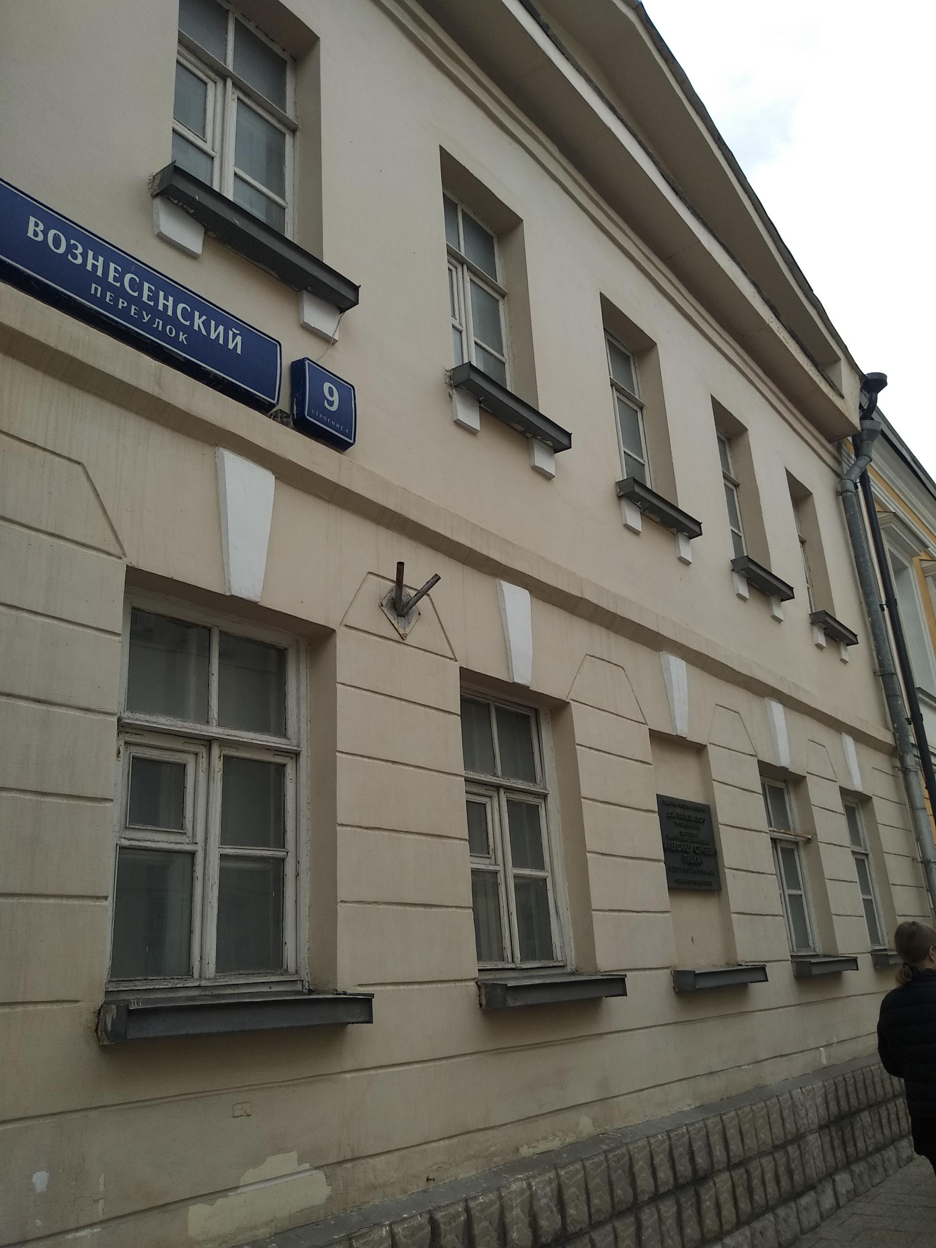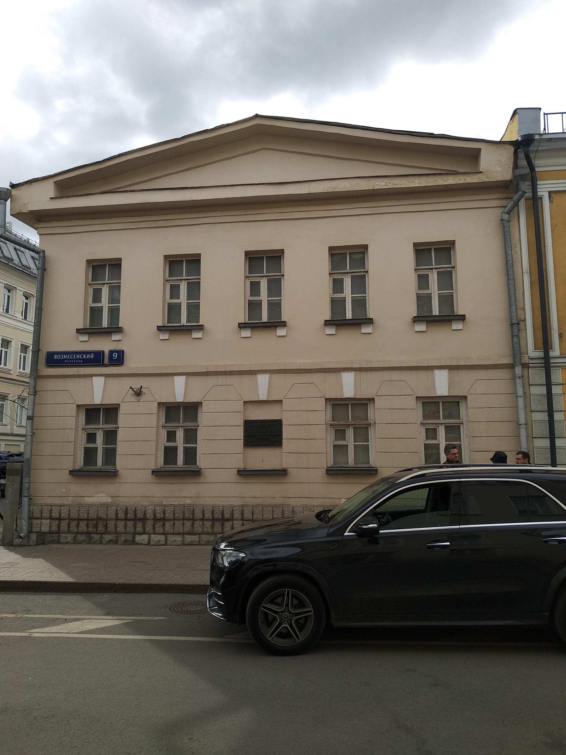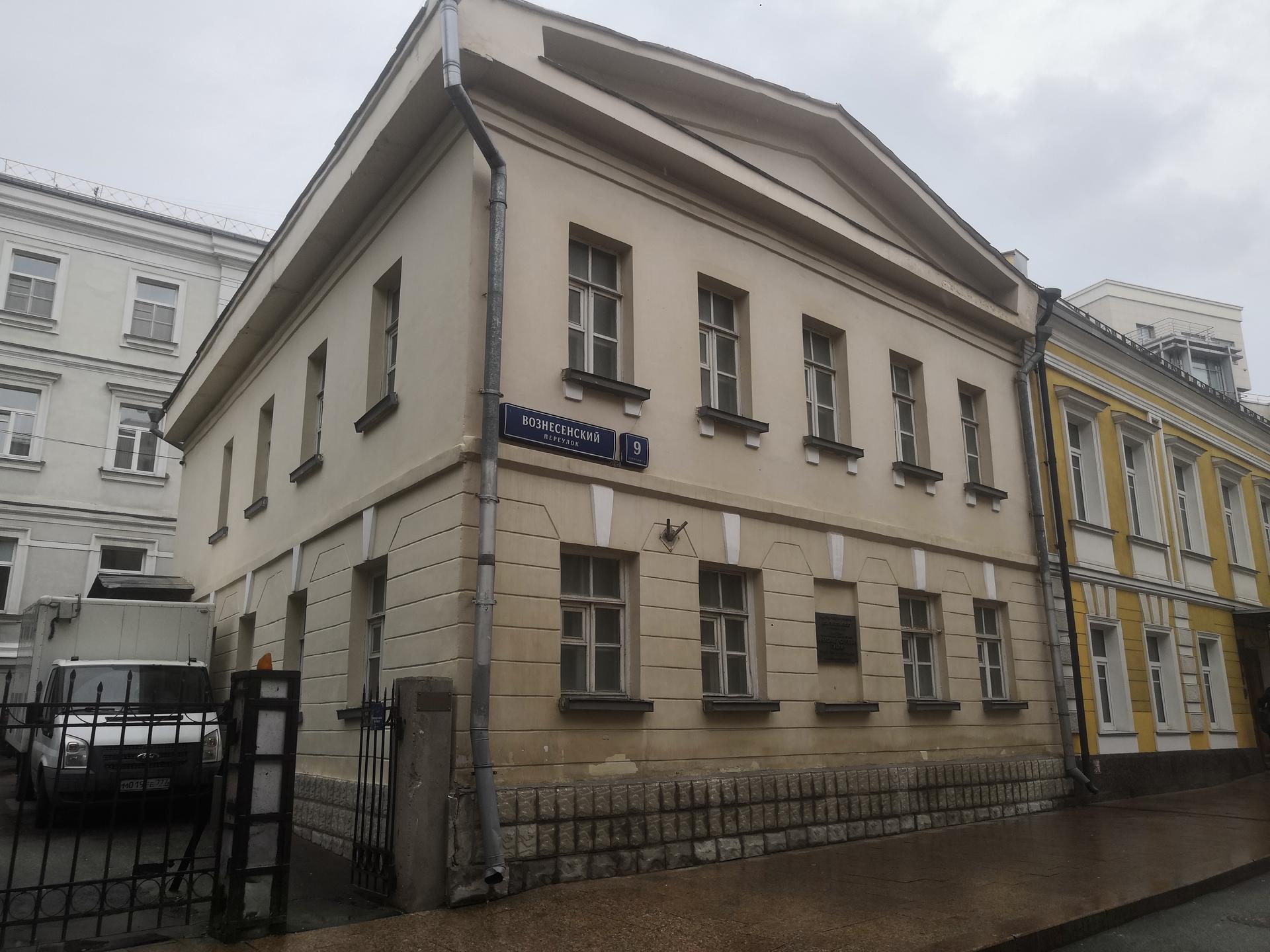 А. С. Грибоедов в 1824 году читал здесь «Горе от ума». В этом доме бывал и А. С. Пушкин. В 1826 году он читал здесь трагедию «Борис Годунов». В 1830 году, приехав из Петербурга, Пушкин жил в этом доме у Вяземского с августа по сентябрь. Отсюда он в начале сентября 1830 года уехал в Болдино. Об этих двух событиях напоминает табличка на фасаде дома.