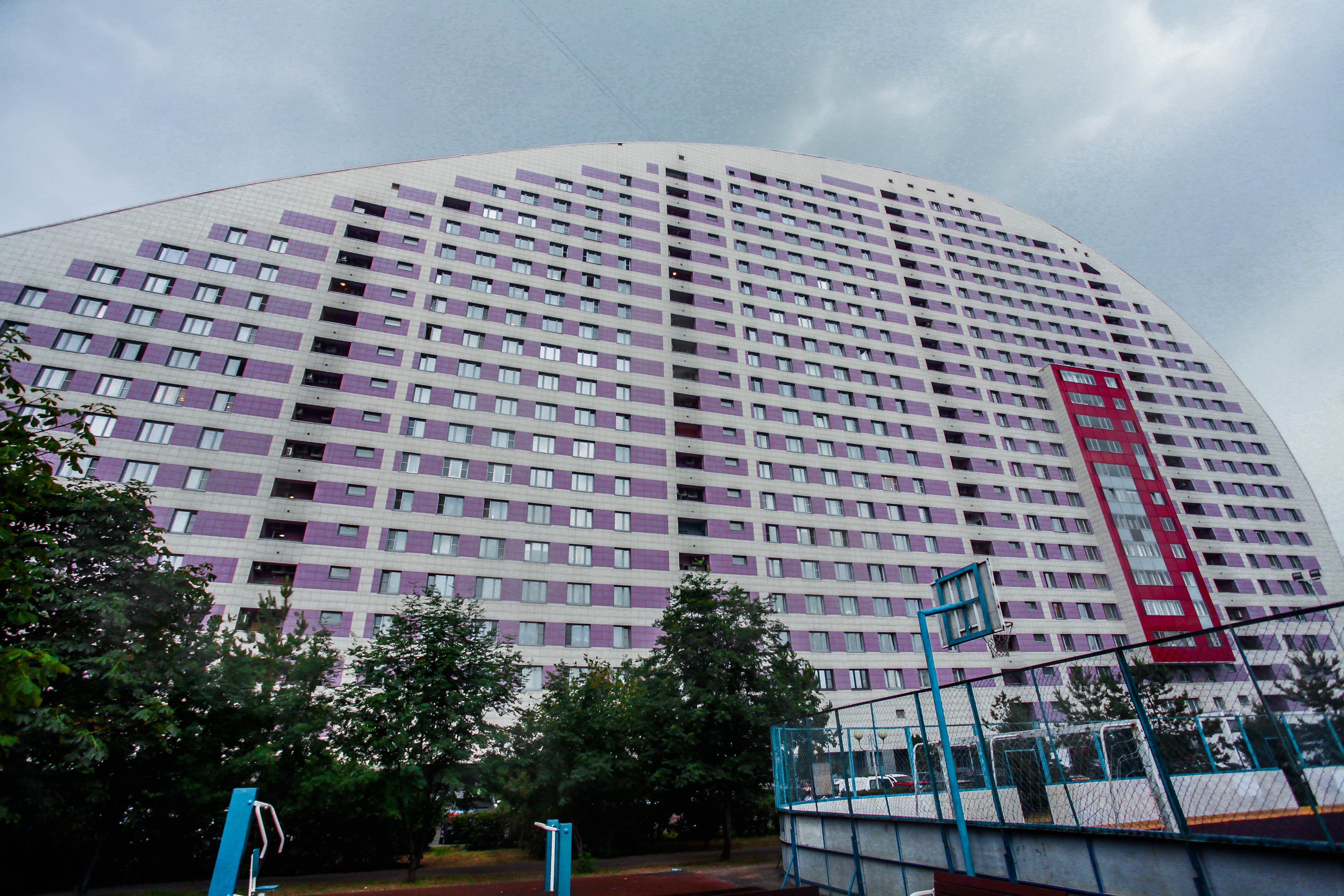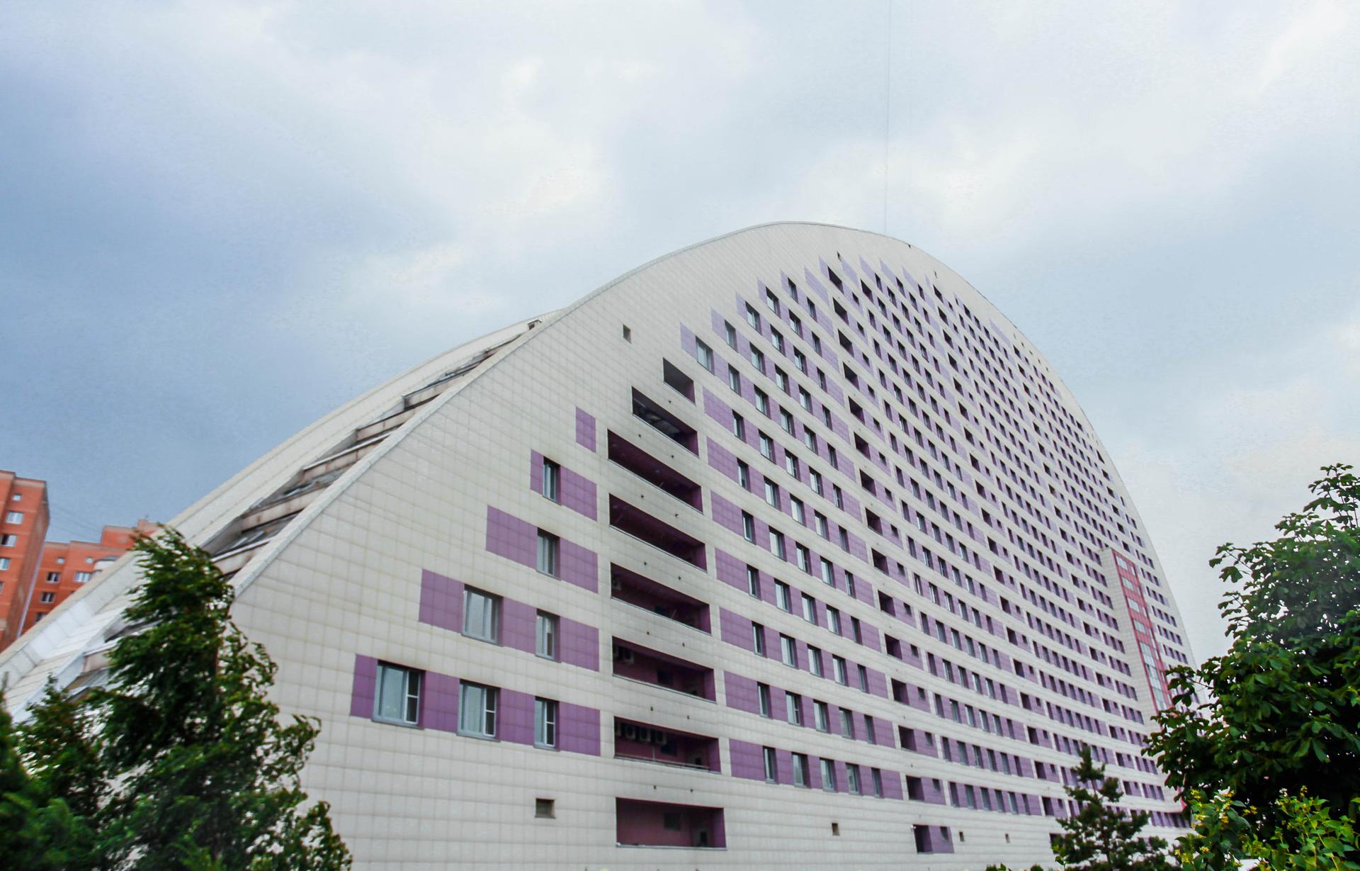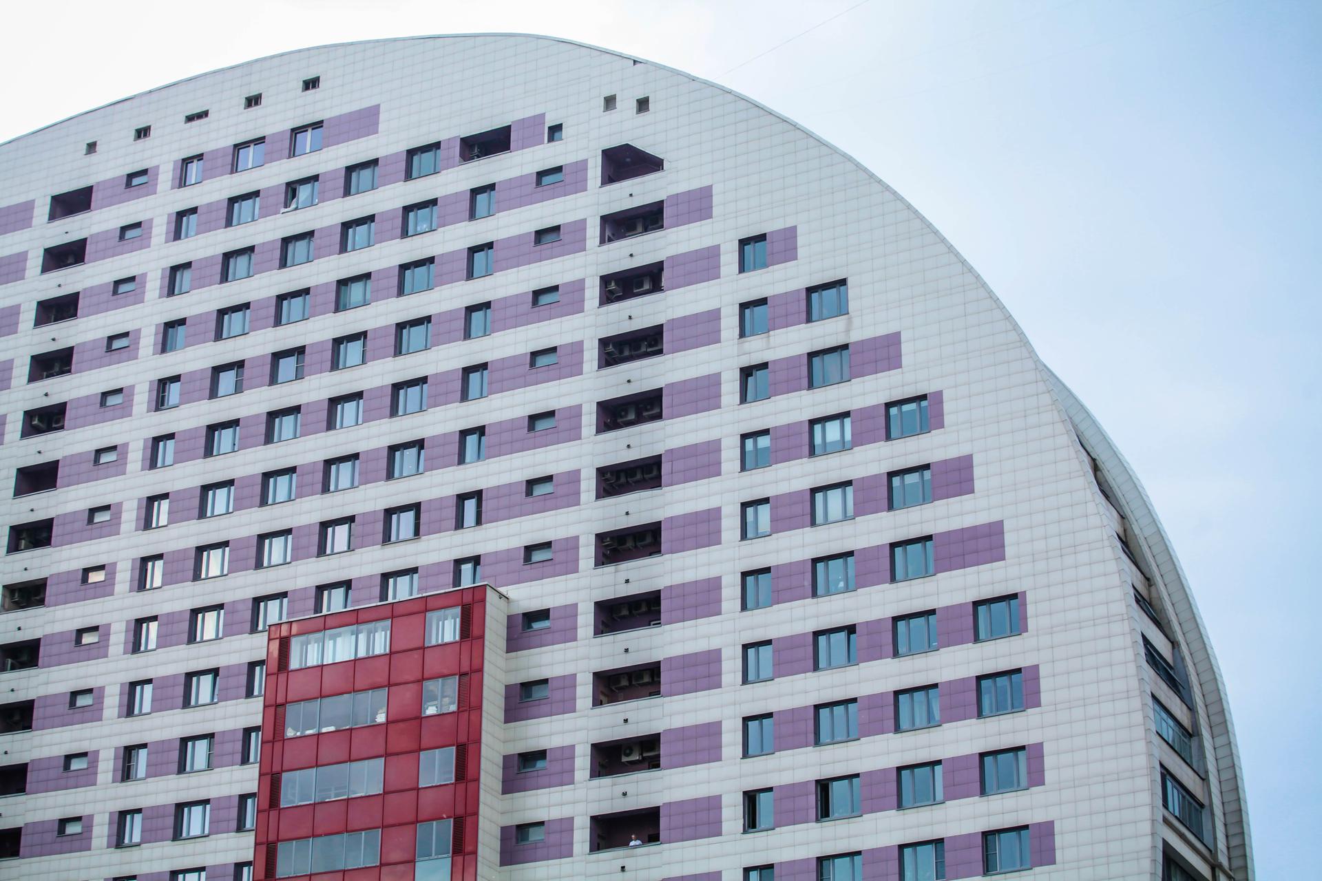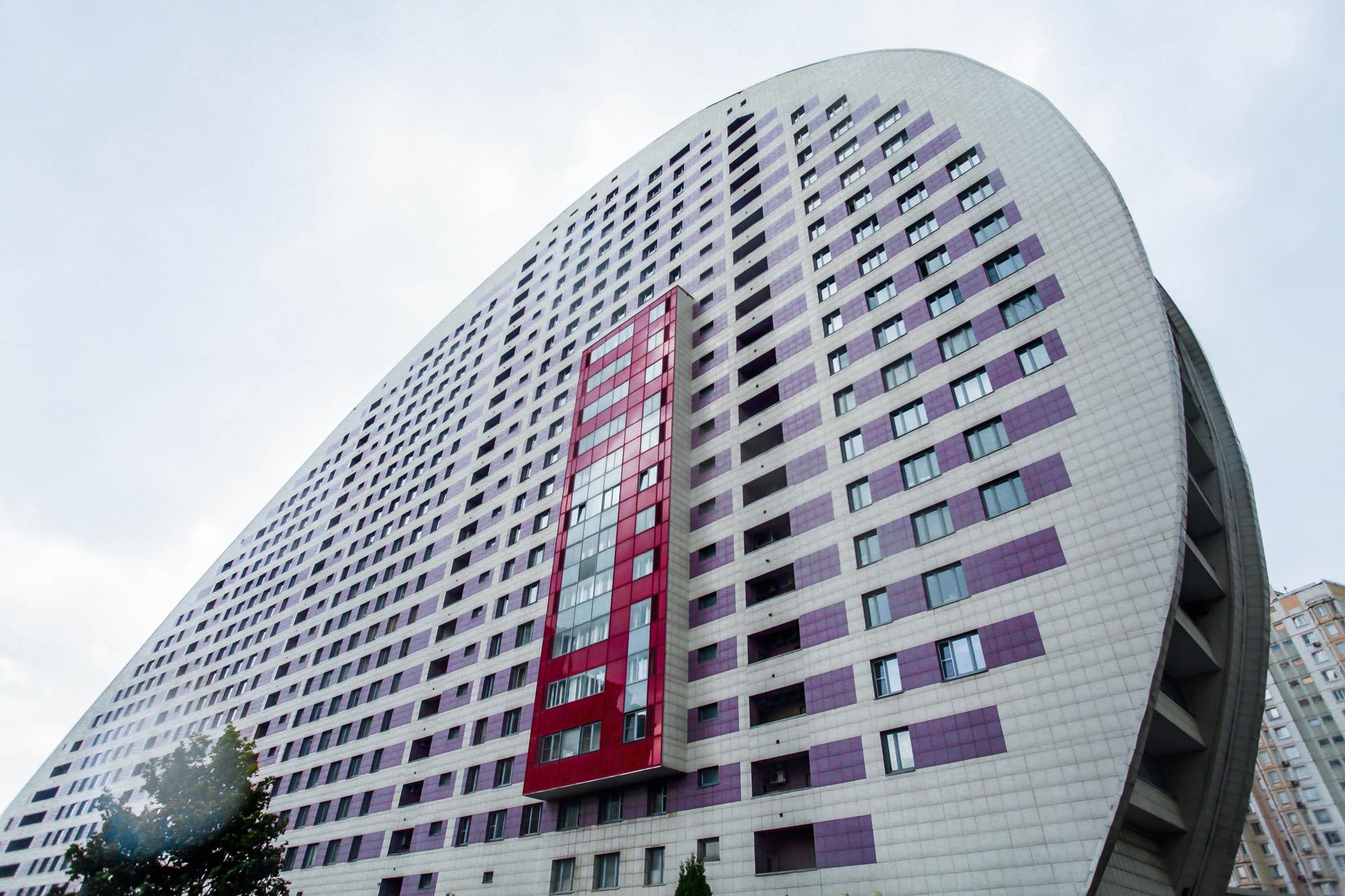 Необычный полукруглый дом, построенный на Ходынском поле в 2007 году, является частью огромного комплекса под названием «Гранд-парк», в который, помимо «паруса» и других жилых домов, входит торгово-развлекательный центр «Авиапарк», музей авиации и космонавтики, ледовый дворец и многое другое. «Дом-парус» кажется плоским — это связано с тем, что здание построено на месте взлетно-посадочной полосы когда-то находившегося здесь аэродрома. Дом имеет 24 этажа, первые два заняты вестибюлем и различными функциональными помещениями, остальные — жилые. В качестве отделки дома использован керамогранит, окна разделены горизонтальным узором, который посередине разбит выпуклой с одной стороны и западающей с другой застекленной частью.