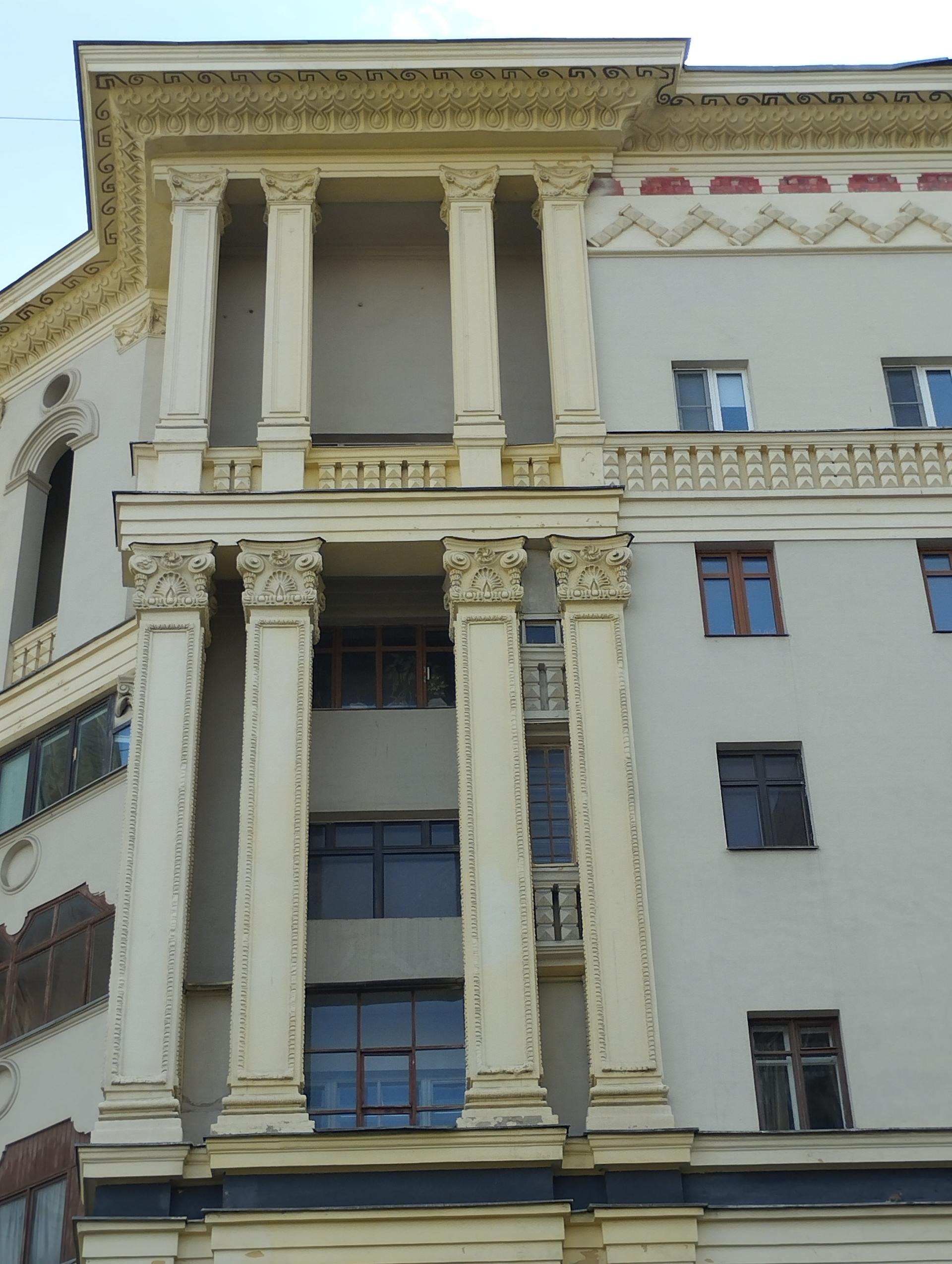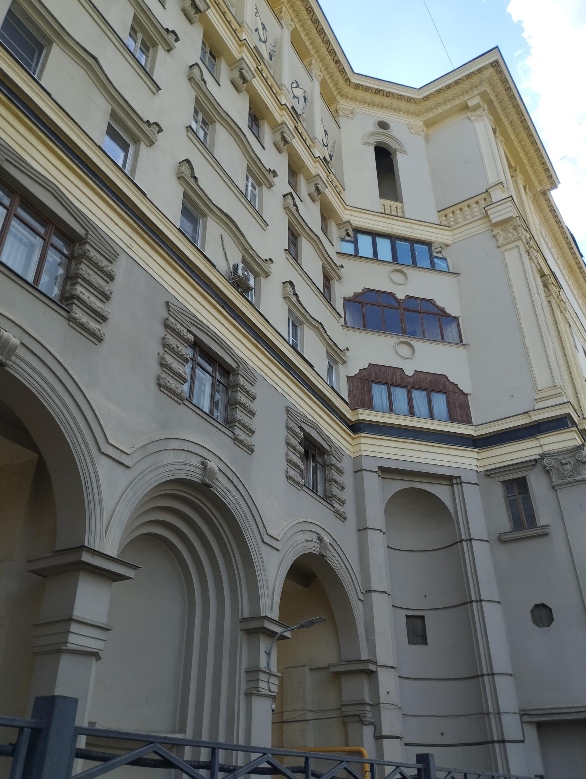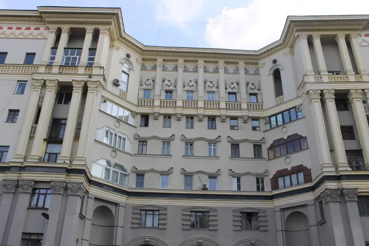 Богатая декорация фасадов, помпезная арка со стороны сквера, украшенная повторяющимися изображениями серпов и молотов с продетыми через них свитками послужили причиной разгромной критики, которой подвергся дом по окончанию строительства. В журнале «Архитектура СССР» отмечалось, что «весь фасад представляет собою образчик фальшивой, насквозь ложной декорации». За четырёхгранные «заклёпки», которыми отделаны три нижних этажа, здание получило прозвище «дом с бородавками».