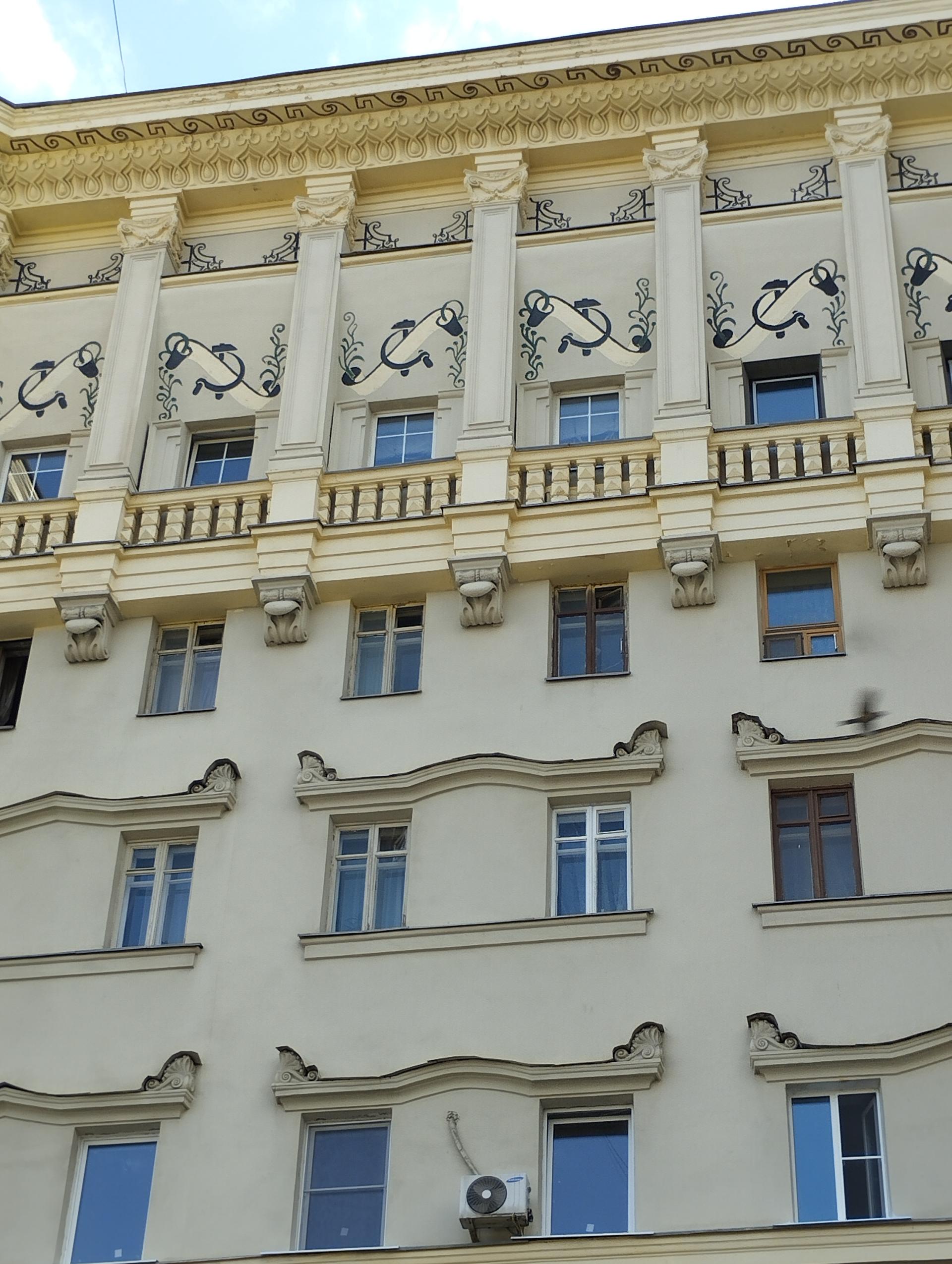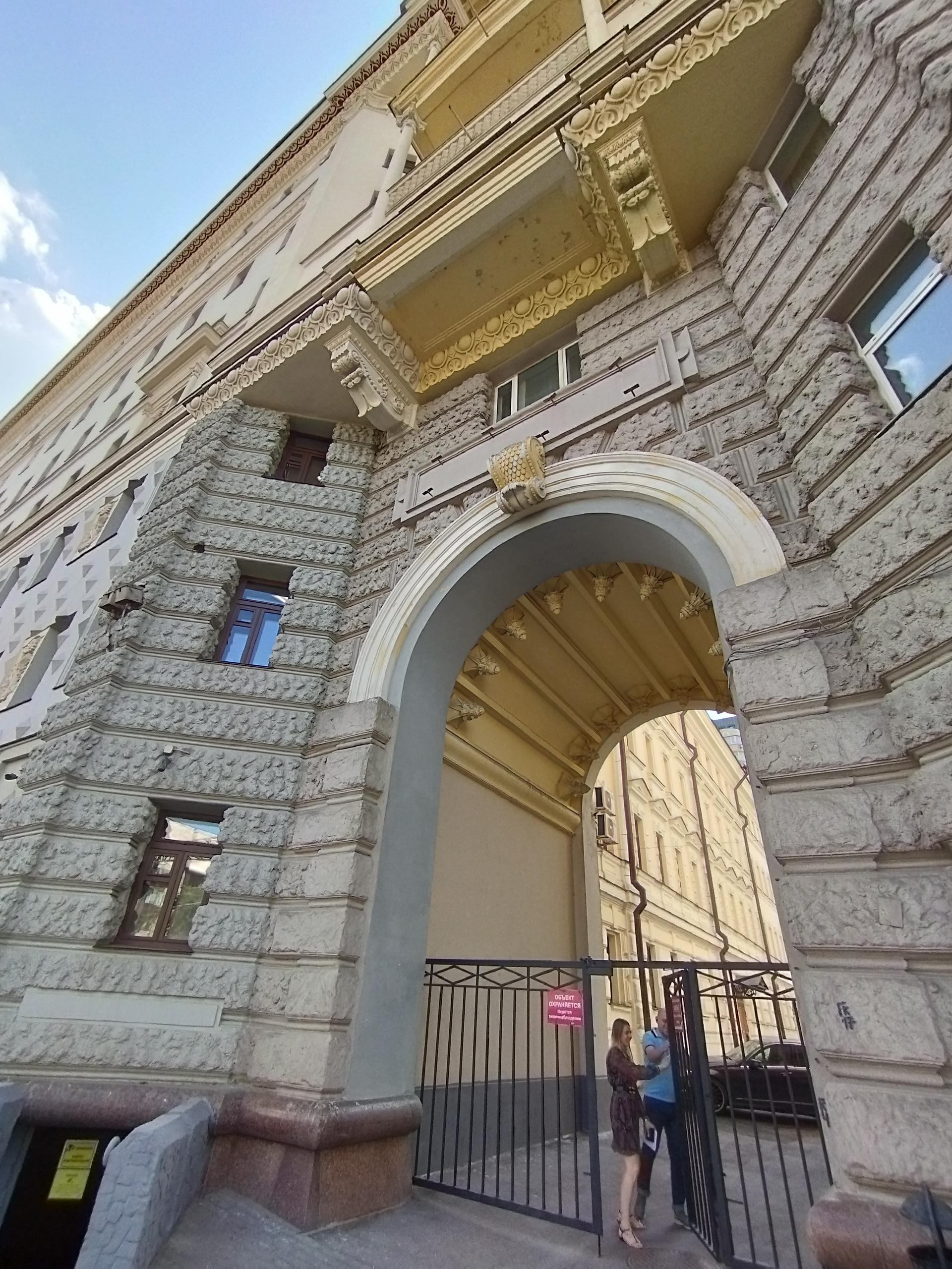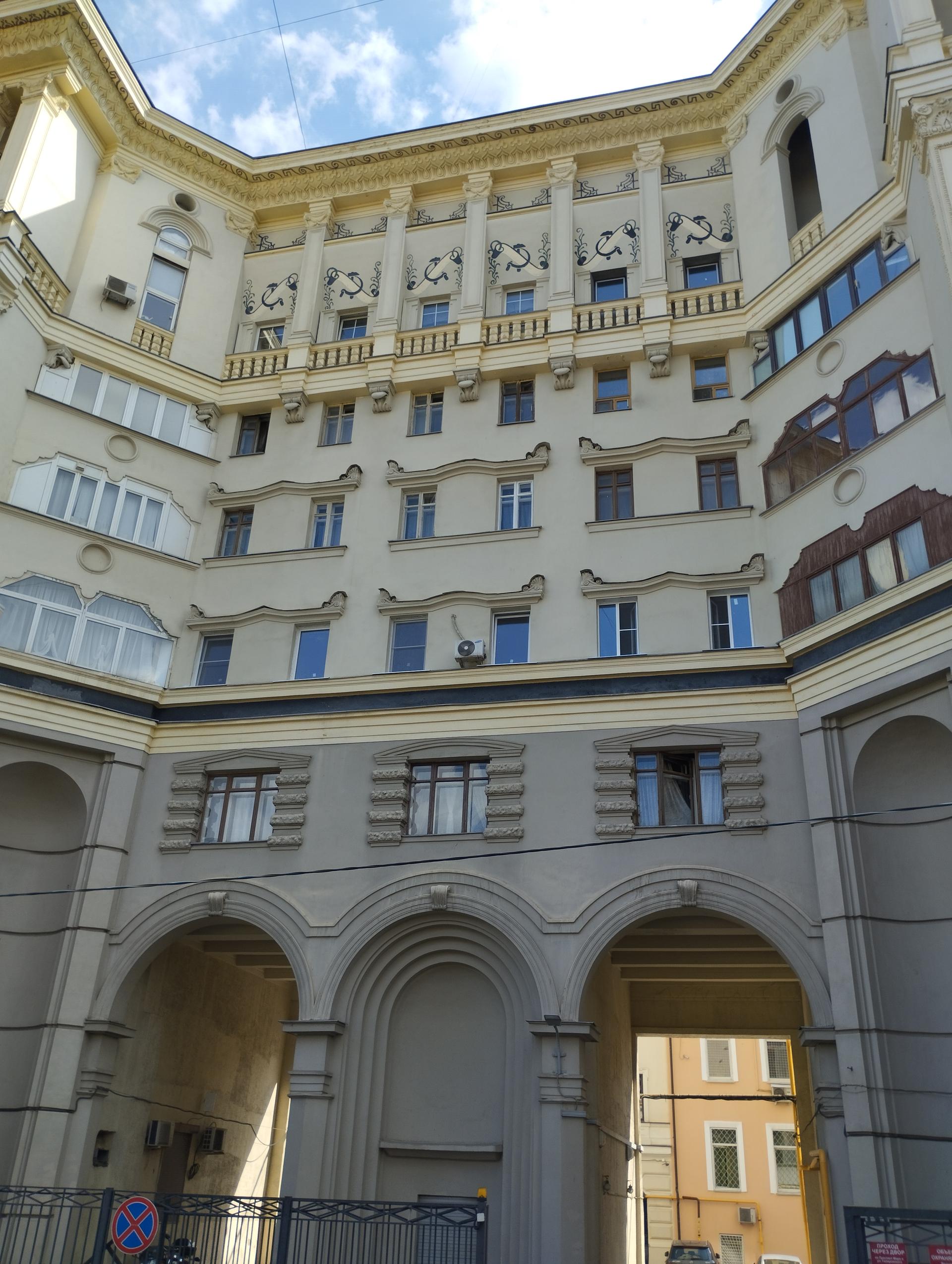 Во дворе «сталинского» здания сохранился старый четырёхэтажный доходный дом (№ 9 по проспекту Мира), возведённый в середине XIX века архитектором А. П. Белоярцевым на месте остатков дворового флигеля и барского дома бывшей усадьбы действительного тайного советника, государственного деятеля, сенатора М. Ф. Соймонова, и выходивший ранее в несохранившийся Адриановский переулок. В интерьерах частично сохранилась дореволюционная лепнина, кафельные печи, лестничные перила, «столярка» и фурнитура дверей и окон. Дом ждёт реставрации.