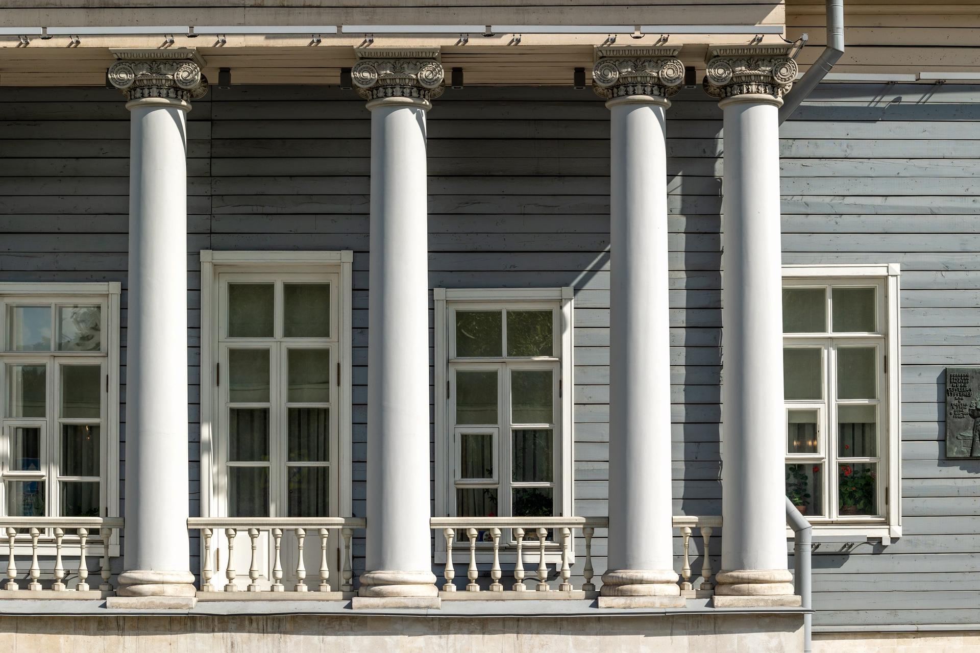 Дом на Остоженке был построен в 1819 году титулярным советником Фёдоровым на пустовавшей земле, приобретённой у генерал-лейтенанта Карла Кнорринга. Деревянный ампирный особняк с шестиколонным портиком, антресолями и семью окнами по фасаду представлял собой типичный образец московской послепожарной застройки.
