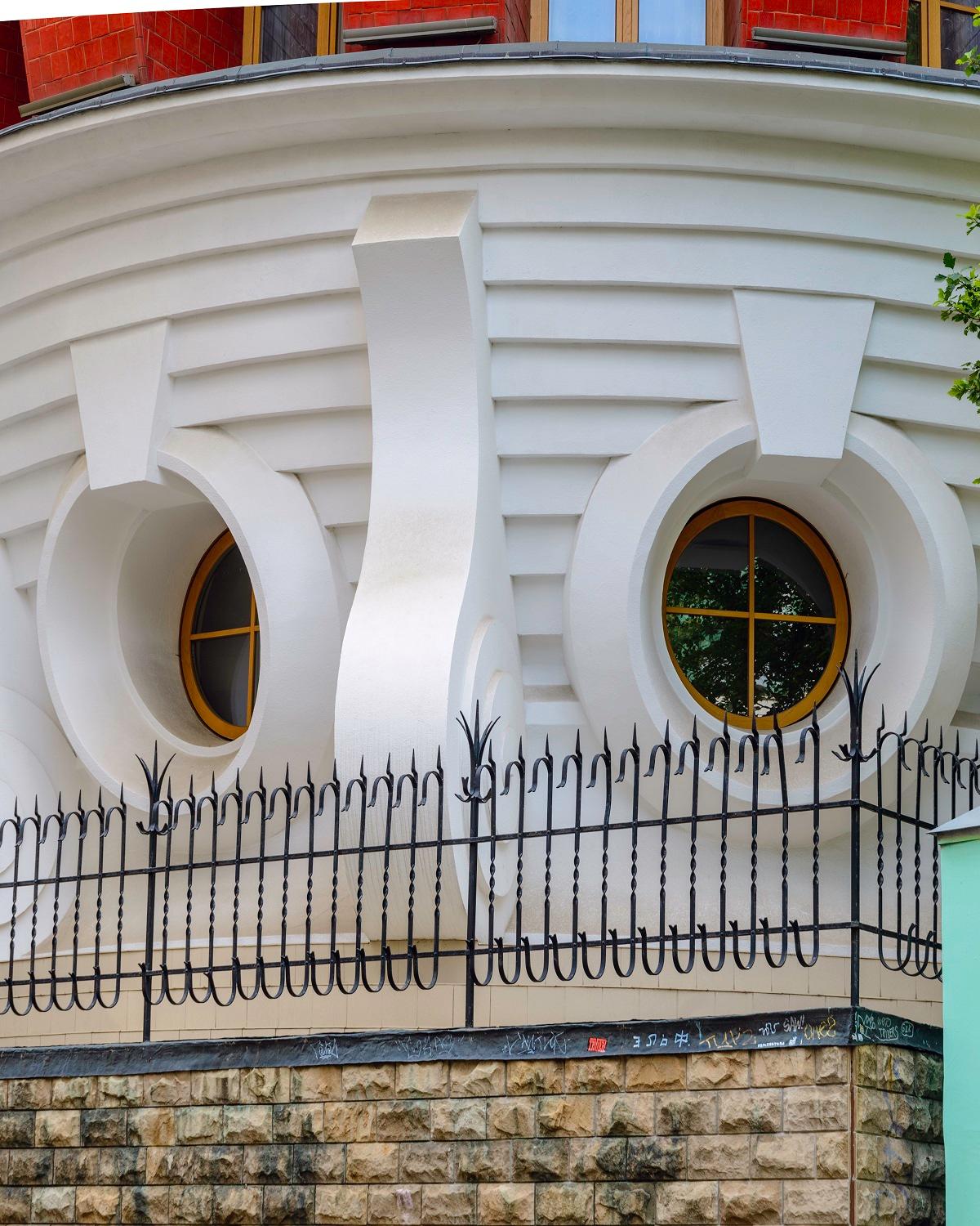 По разным версиям, здание нестандартной формы планировалось как эксклюзивные апартаменты или как корпус родильного отделения. Сегодня это жилое четырехэтажное здание площадью почти 350 м² выставлено на продажу.