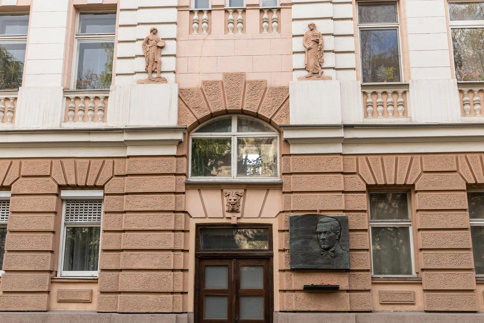 14 сентября 2017 года на доме была открыта мемориальная доска в честь Муслима Магомаева, "Орфея ХХ века" — так гласит высеченный на ней текст. Автор мемориальной доски — скульптор Салават Щербаков. Доска расположена под окнами квартиры, в которой жил Магомаев.