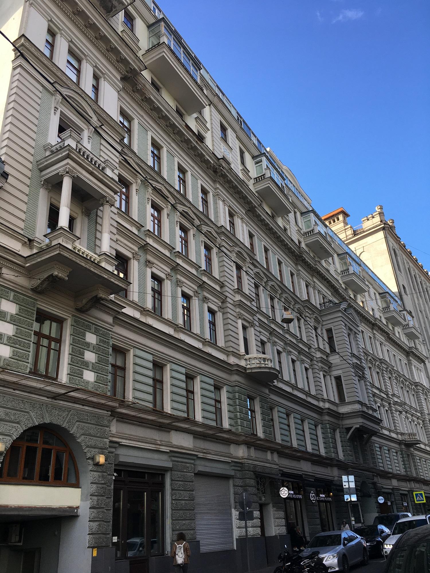 В конце XIX века тихому уголку Москвы суждено было приобрести облик, соответствующий времени. Владение купил архитектор московского модерна Николай Григорьевич Фалеев и выстроил добротный пятиэтажный доходный дом, позднее, в 1930‑х годах, надстроенный двумя этажами. В 1905 году владелицами его значились Зинаида, София, Александра Алексеевны Фалеевы. В 1998 году дом подвергся капитальной реконструкции, вновь приобретя статус роскошного доходного дома в центре Москвы. Во всем переулке осталось не более пяти жилых домов, но дом Фалеева по-прежнему в их числе.