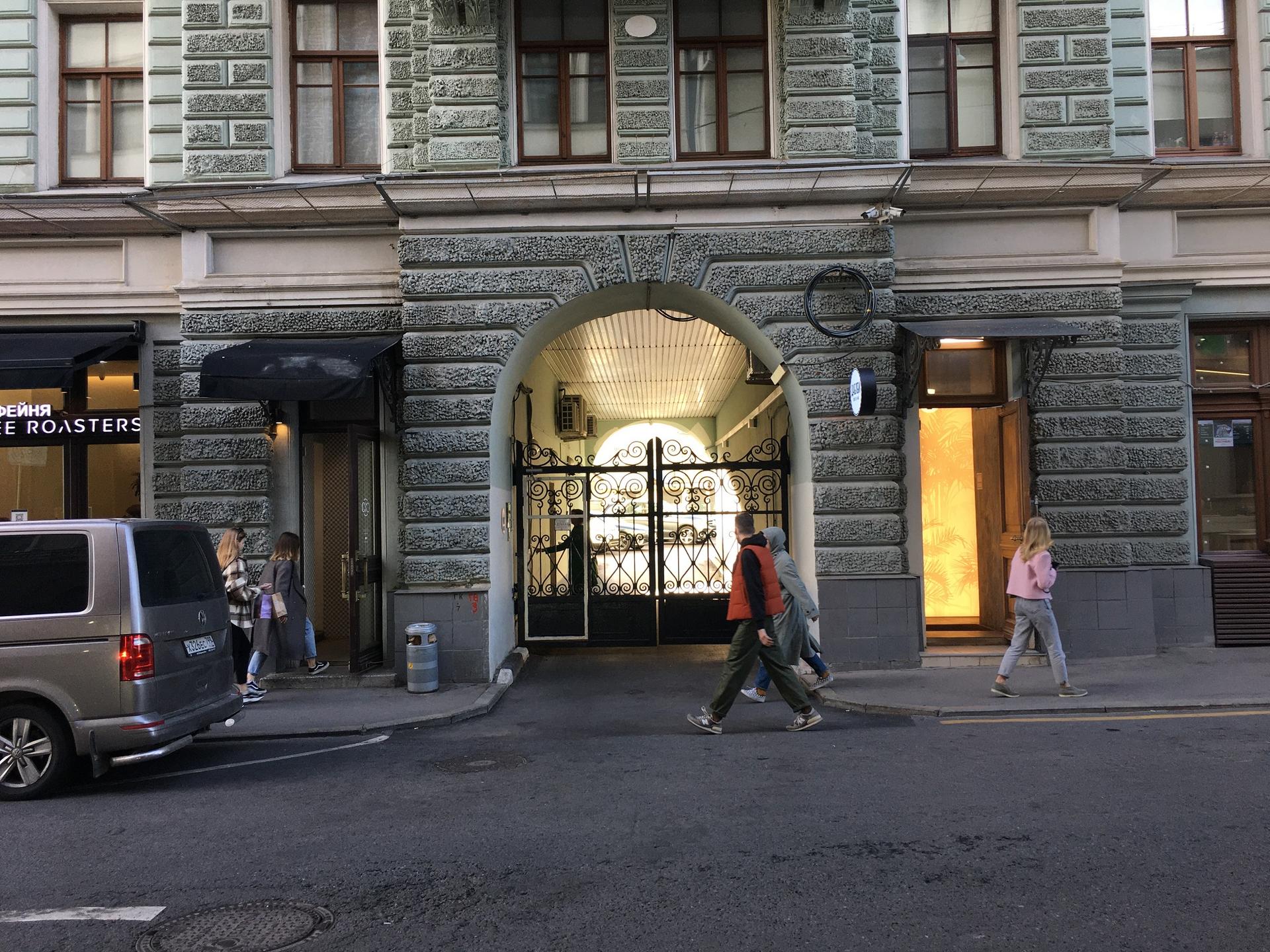 Ответвляясь от широкой Мясницкой улицы, Милютинский переулок начинается высоким доходным домом 1897 года рождения. Некогда на этом месте, напротив ныне утраченной церкви cв. Евпла, стоял небольшой деревянный, но с каменными флигелями, домик купчихи Авдотьи Сониной. Тихий уголок привлек внимание петербургского купца Свешникова, бывавшего по делам на Мясницкой улице. Вскоре, в 1815 году он поселился здесь со своей семьей.