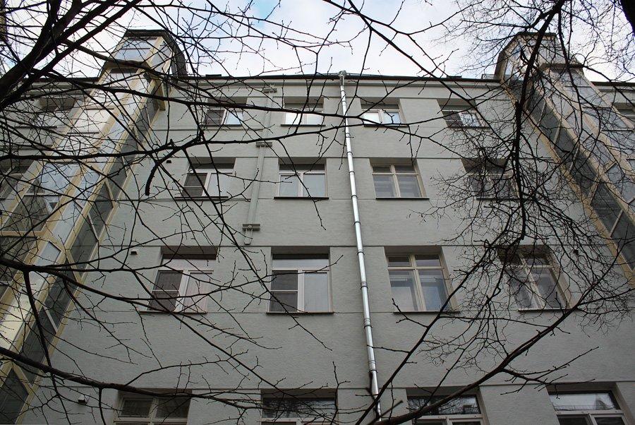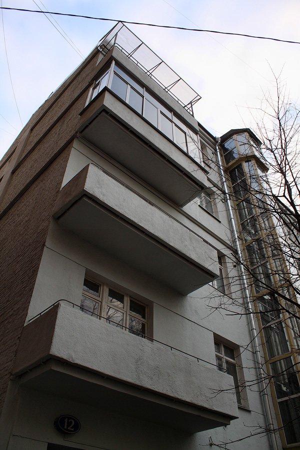 Дом, построенный в 1928 году по проекту знаменитого Ивана Рерберга, автора Брянского (Киевского) вокзала и расположенного неподалеку Центрального телеграфа, скромен, как и подобает кооперативному жилью конца эпохи НЭПа.