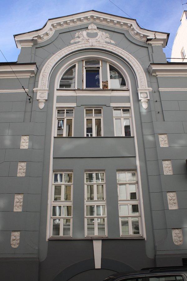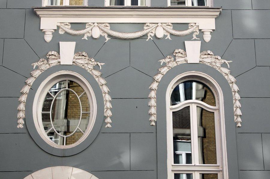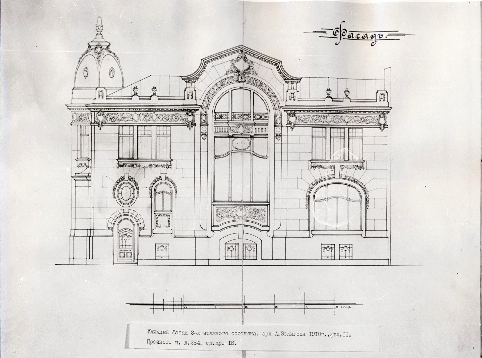 В проекте особняка, выполненного для владельцев участка супругов Бройдо читаются приемы французского Ар Нуво.