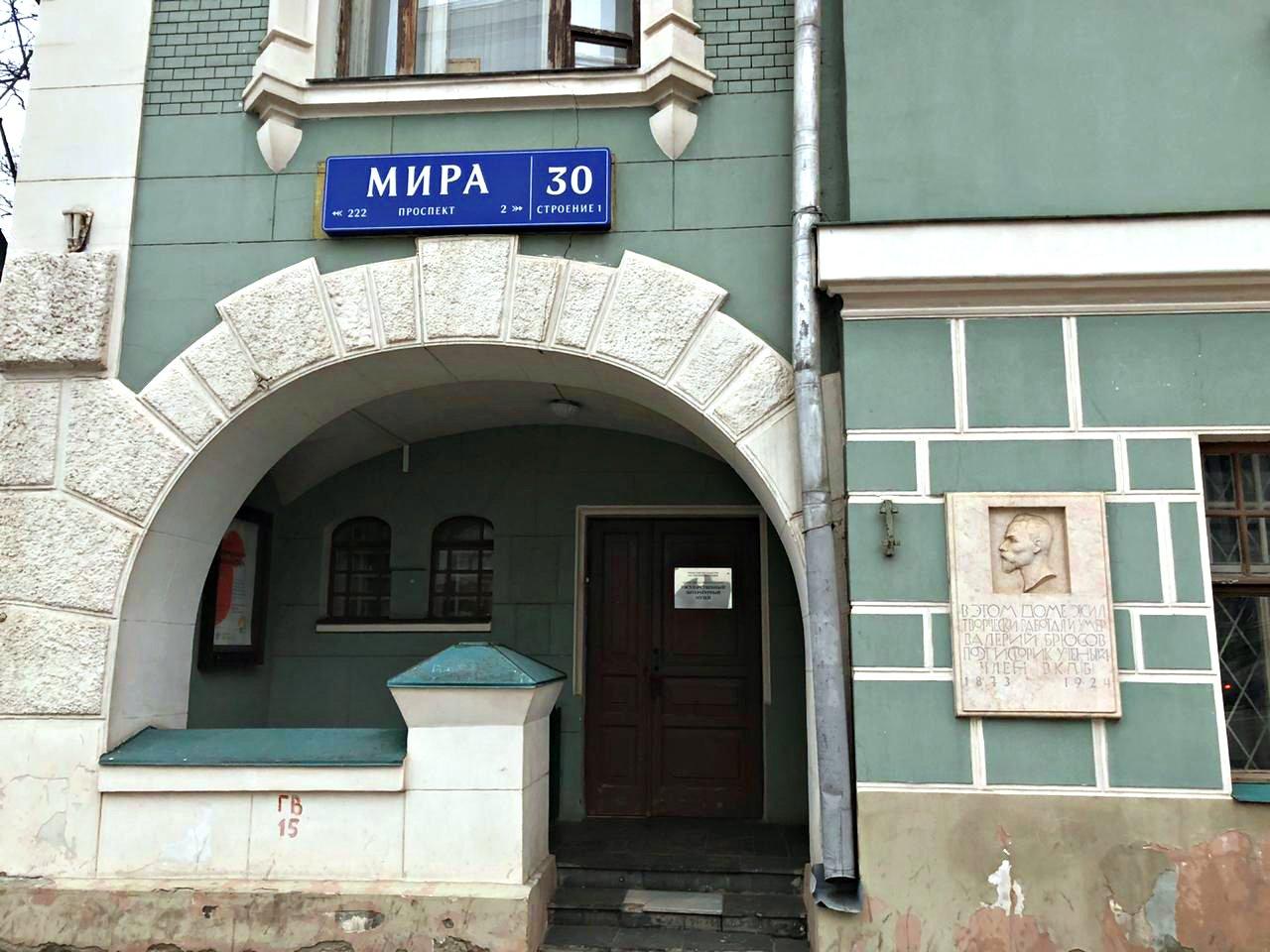 Сам особняк до революции (тогдашний его адрес – 1-я Мещанская улица, д. 32) принадлежал купцу Ивану Кузьмичу Баеву, потомственному почетному гражданину, члену Торгового дома «Иван Денисович Баев старший с братьями». Брюсов вместе со своей семьей снимал в доме Баева квартиру на первом этаже.