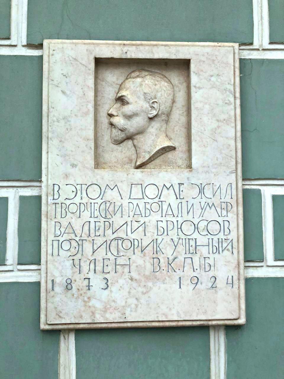 На проспекте Мира, рядом с входом в Аптекарский огород, расположен небольшой особняк в стиле модерн - известный московский мемориальный памятник - дом поэта Валерия Брюсова. Брюсов провел здесь 14 последних лет жизни – с 1910 по 1924 год, здесь же он и умер.