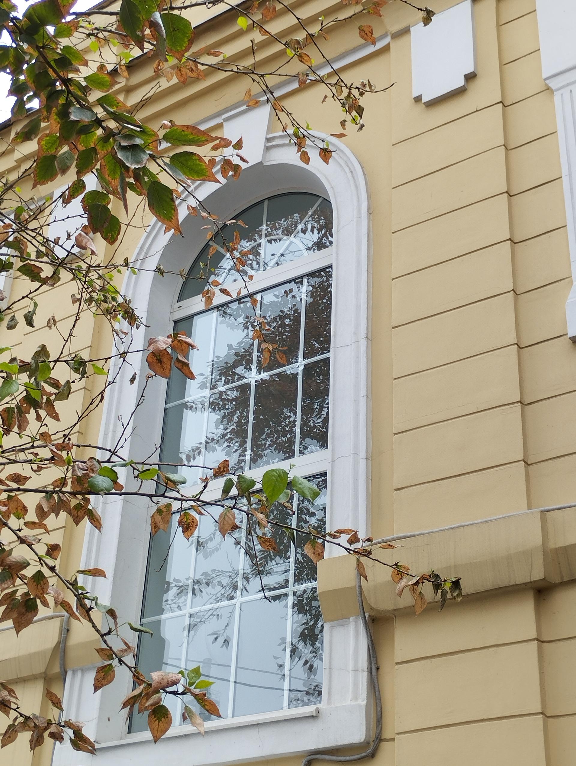 А вот красивое панорамное окно арочной формы на фасаде здания осталось на своем месте и украшает дом, как и сто лет назад, только вот расположенный под ним вход ныне замурован. А тогда он играл важную роль: через него в съемные квартиры попадали жильцы, ведь дом задумывался как доходный.