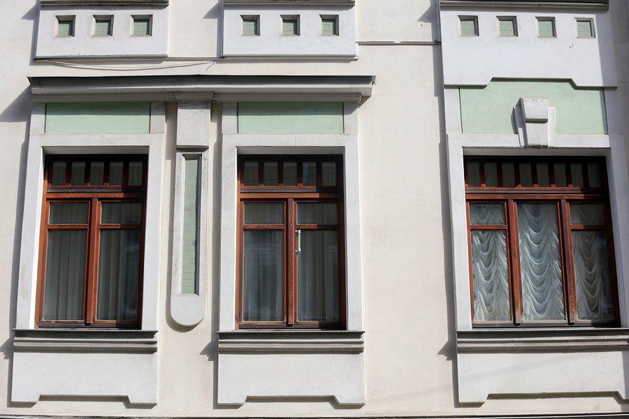 В 2000-е гг. дом реконструировали, и теперь он привлекает глаз прохожих своей керамической плиткой на аттике верхнего этажа и огромным эркером с окном лестничного марша с причудливым переплетом.