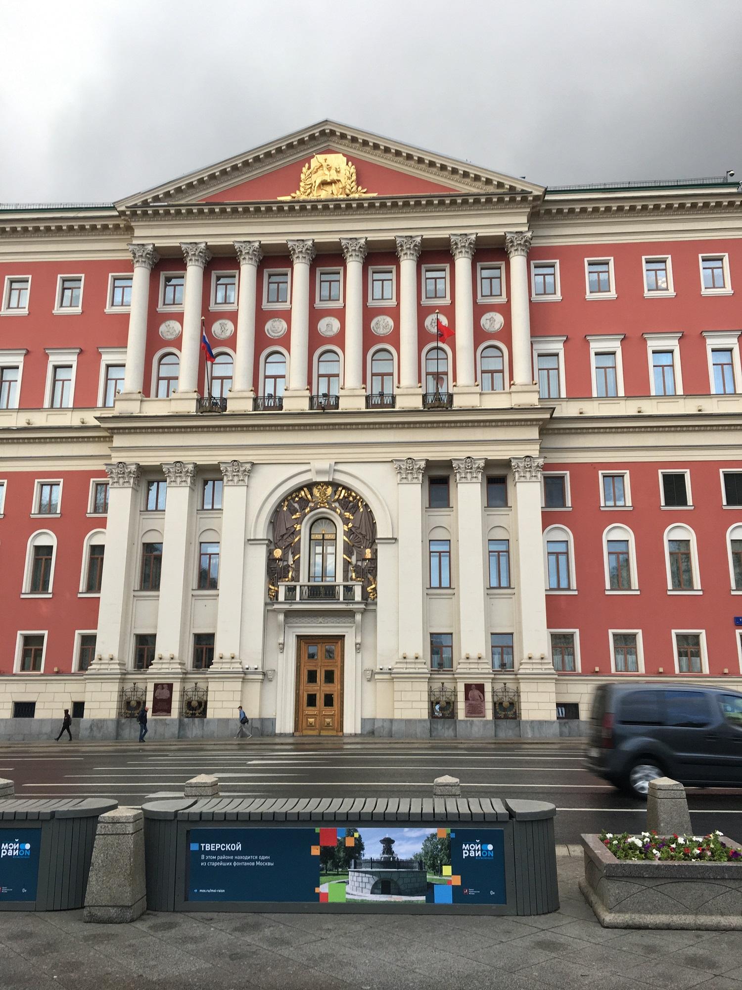 В середине 1940-х здание Моссовета не только надстроили двумя этажами, но и подарили четырехэтажному сооружению новый фасад темно-красного цвета. Реконструкцией здания в неоклассическом стиле занимались мэтры архитектуры – Дмитрий Чечулин и Михаил Посохин. Здание стало настоящей «смысловой доминантой» улицы. В 1990 году Моссовет переименовали в мэрию. Летом 2014 года завершилась реставрация исторического здания на Тверской улице, 13. Реставраторам удалось восстановить кирпичную кладку, большую парадную дверь и ажурную металлическую ограду здания. Особое внимание уделили восстановлению элементов фасада из белого камня и штукатурки, а также уникальному лепному декору.