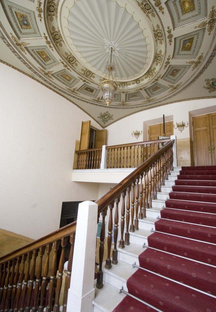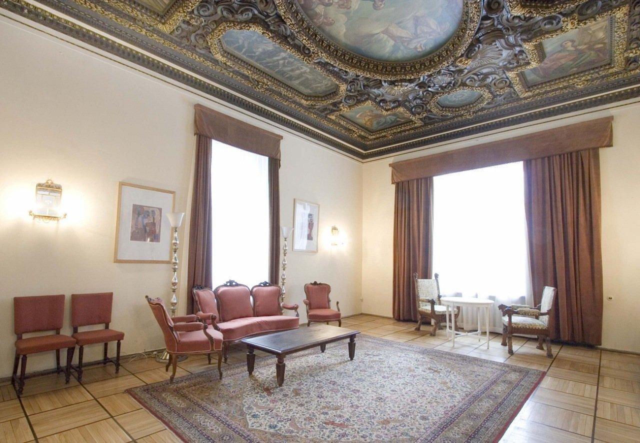 Интерьеры дома были также выдержаны в неоклассической стилистике. Плафон одного из парадных залов представлял собой уменьшенную реплику живописных плафонов Паоло Веронезе в зале коллегий Дворца дожей в Венеции. Плафоны парадной лестницы и залов также имели росписи, лепной декор, в отделке широко использовался искусственный мрамор.