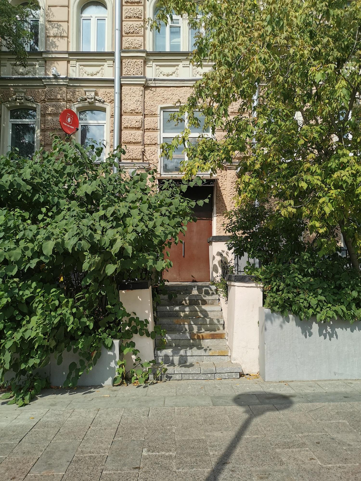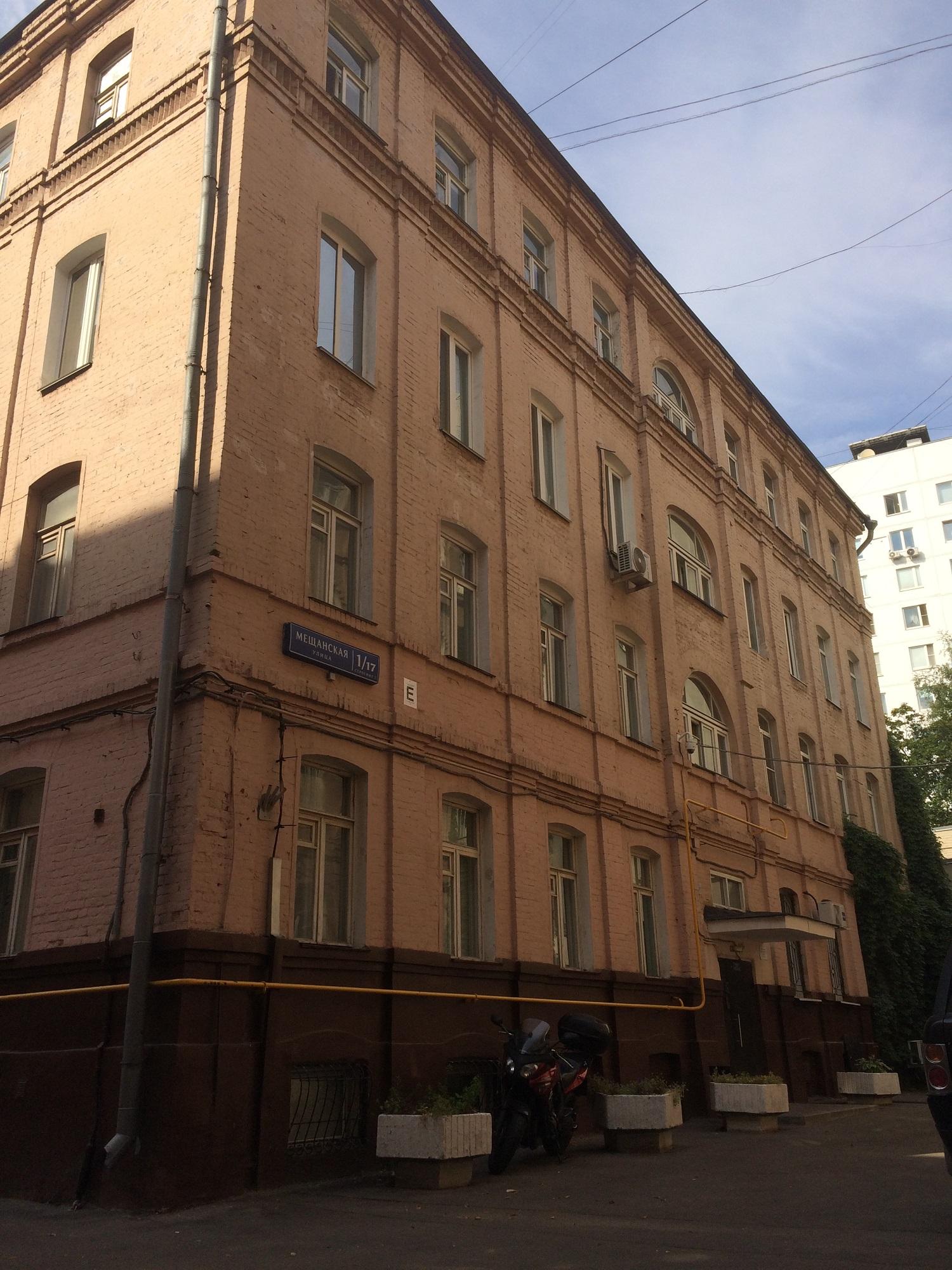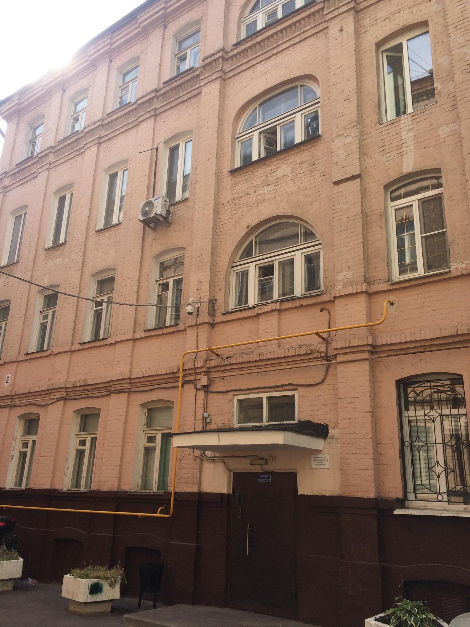 Сейчас кажется невероятным, но это небольшое пятиэтажное розоватое здание в стиле эклектики — один из первых многоэтажных доходных домов Москвы конца ХIХ века. Владелицей дома была немка Клара Кирхгоф.