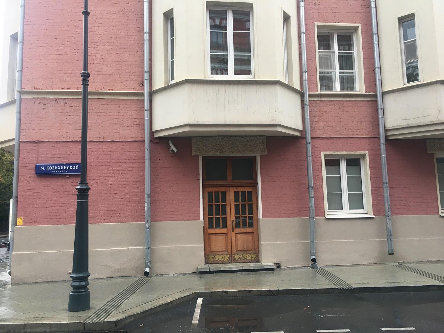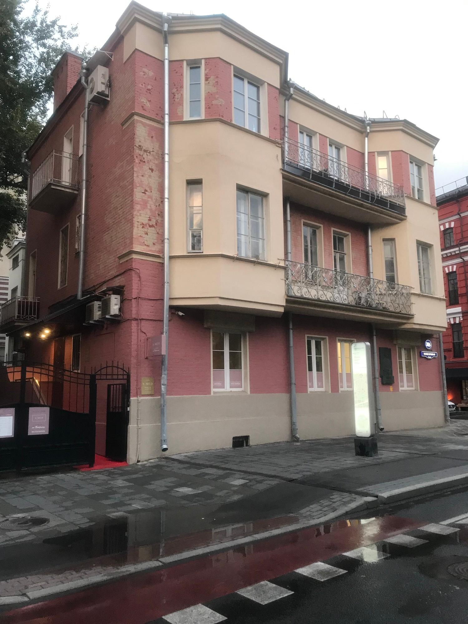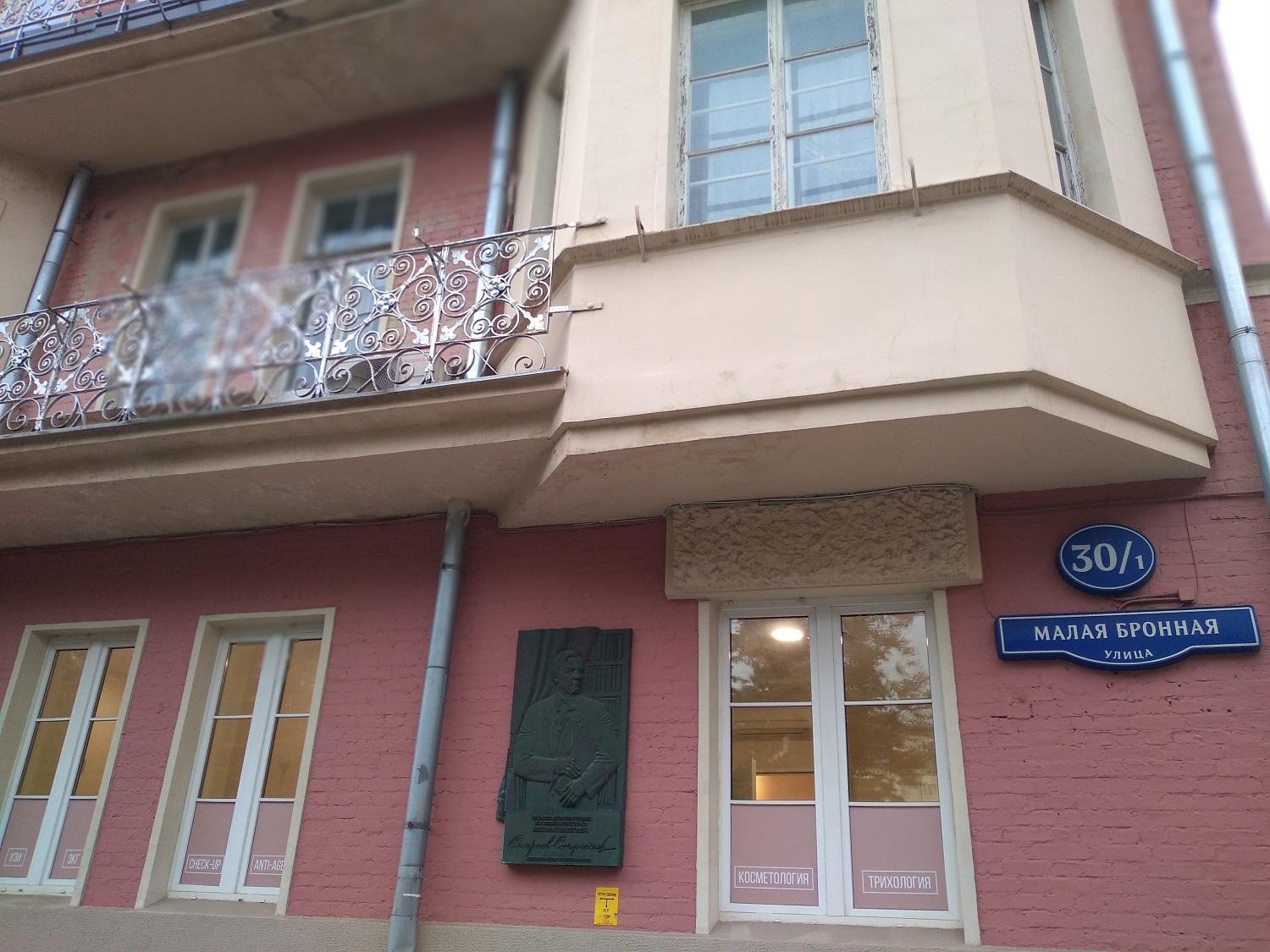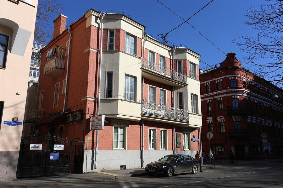 Небольшой кирпичный домик с отштукатуренными вставками на Малой Бронной — одно из немногих воплощенных в жизнь творений архитектора.