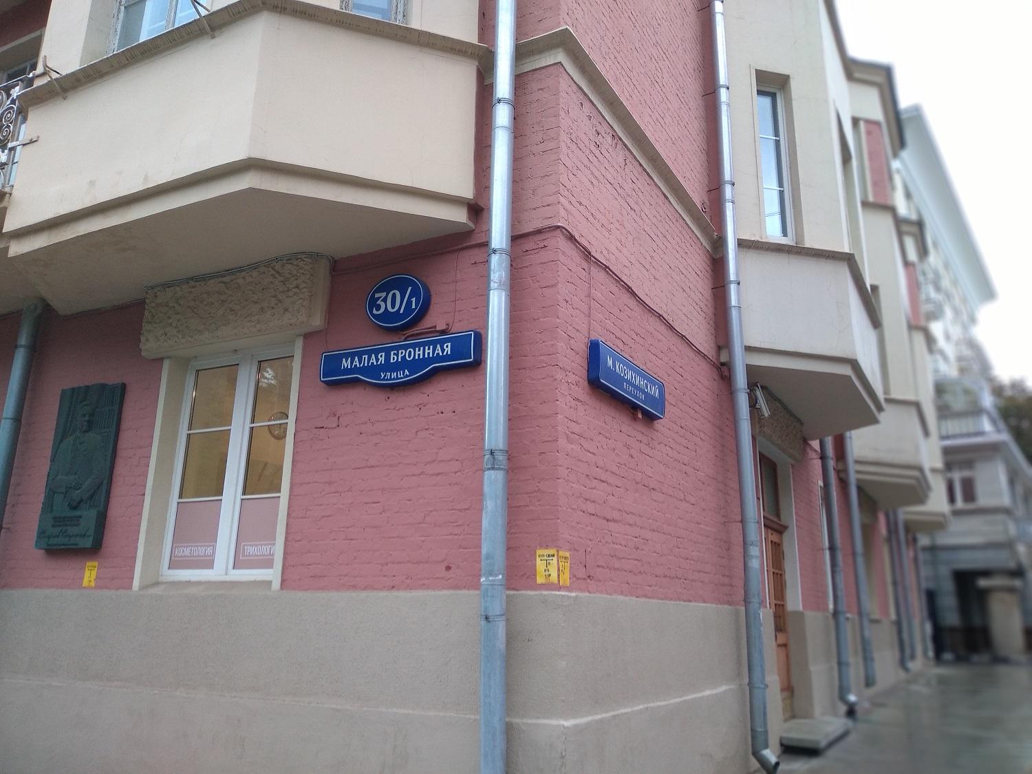 Трехэтажное здание в стиле "авангард" на углу Малой Бронной и Малого Козихинского переулка можно было бы назвать домом с эркерами.