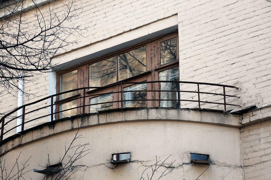 Убранство здания чрезвычайно скромное — он составлен из двух секций, перпендикулярных друг другу, и на фасадах выделяются только круглые окна и сильно выступающие эркеры с панорамными окнами гостиных комнат. Красный кирпич не был оштукатурен и впоследствии окрашен унылой московской бежевой краской.