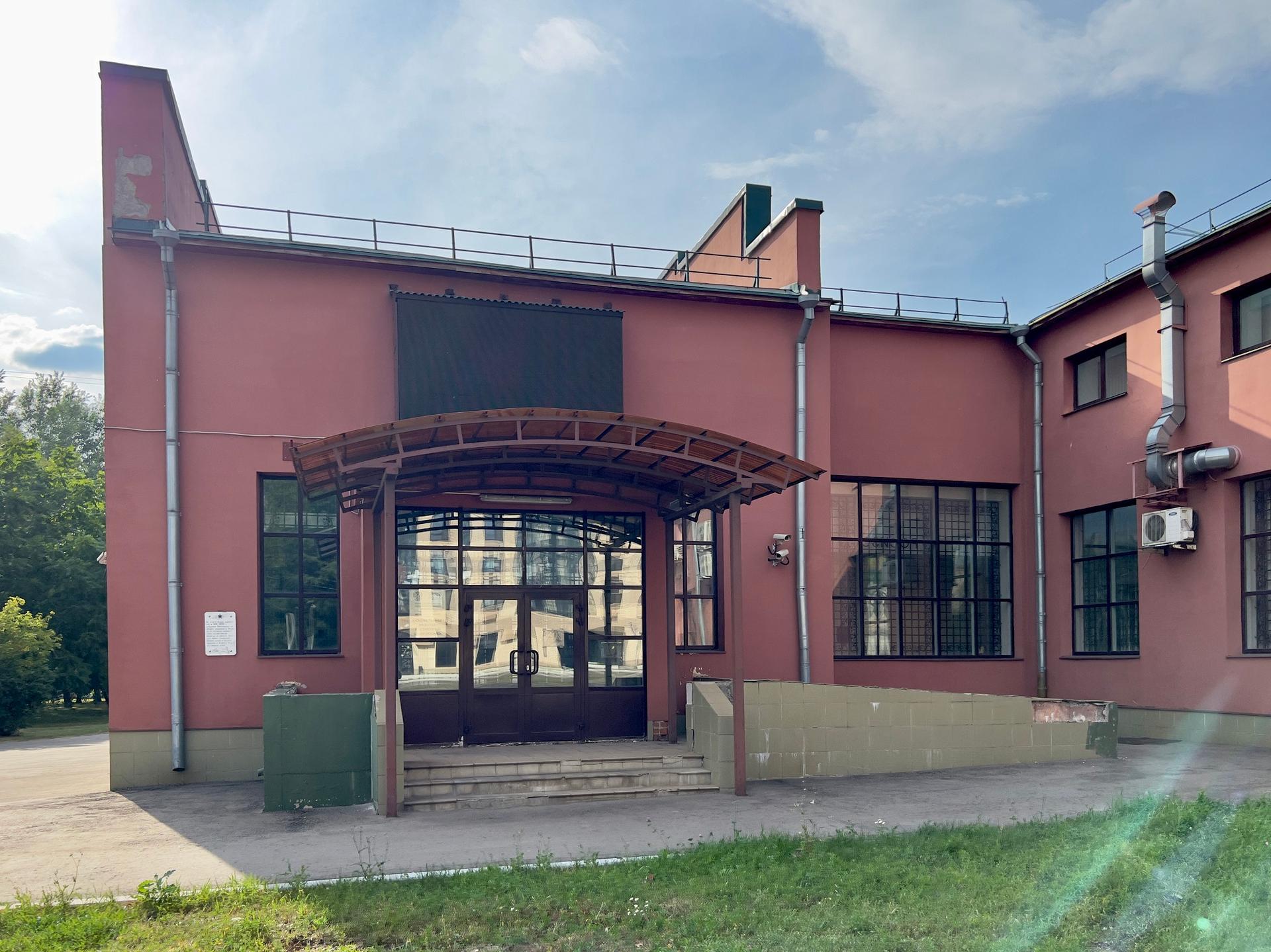 Дом, вызывающий совершенно разные эмоции: с одной стороны, это здание, находящееся в процессе реконструкции, окрашенное в светло-жёлтый цвет с элементами зеленого, с другой стороны - здание в том же цвете, но после ремонта, а с третьей - это совершенно современное строение благородно-красного цвета с большим экраном над входом.