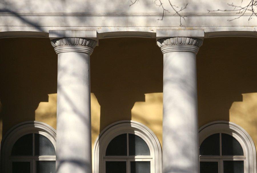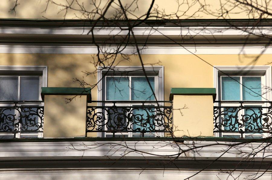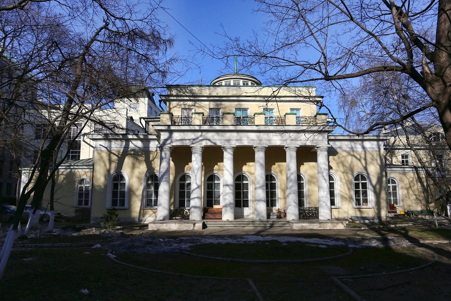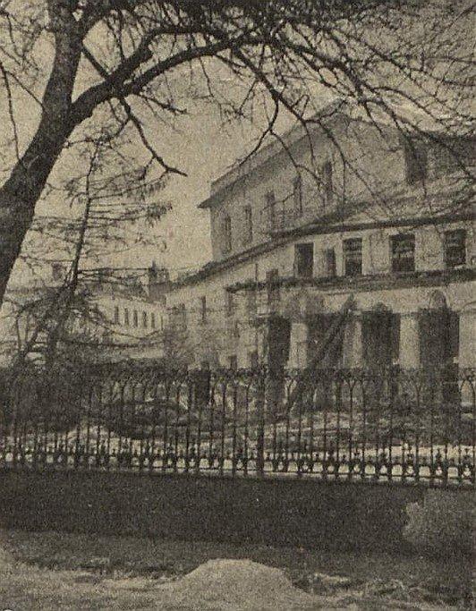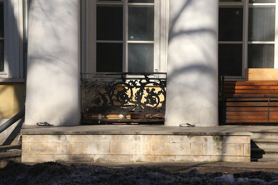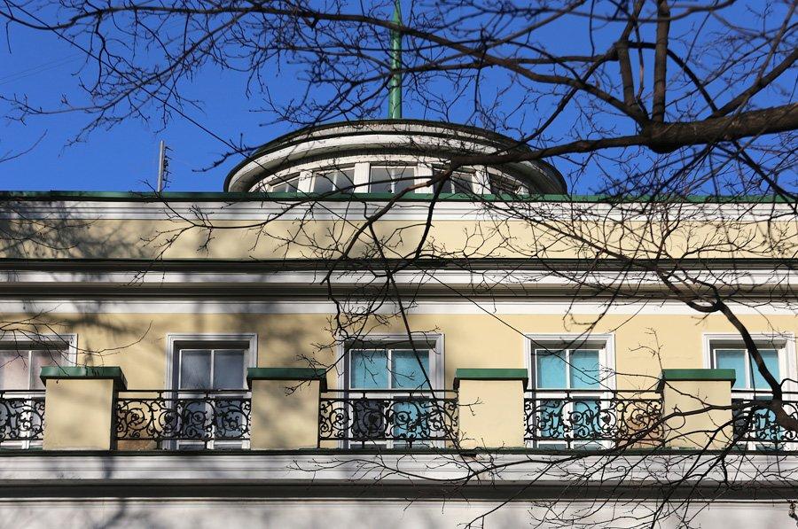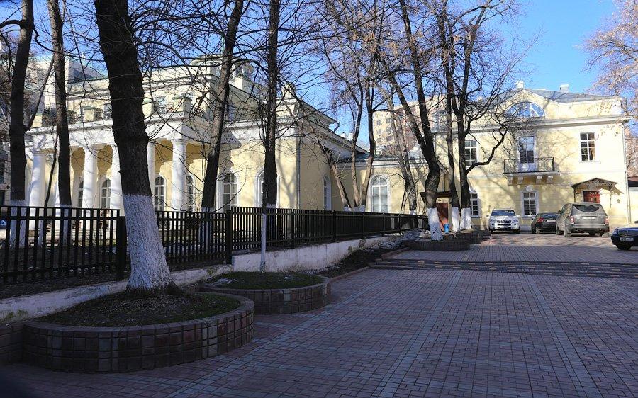 От улицы особняк отделяет решетка, копия ограды дома Гагарина на Новинском бульваре, погибшая в 1941 году.