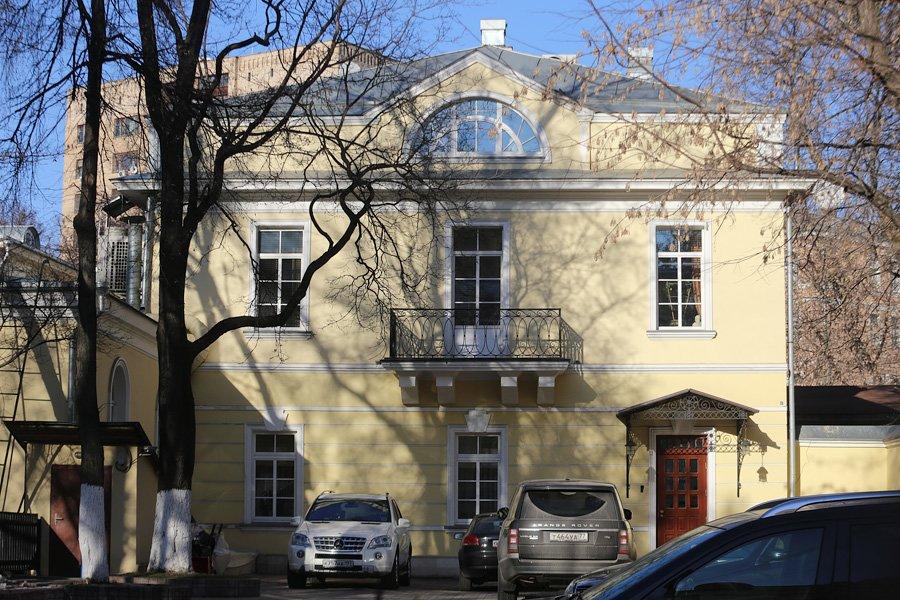 Ампирный усадебный дом с шестиколонным тосканским портиком и мезонином, увенчанным бельведером, стоящий в глубине двора тихого переулка, был построен в 1830-х годах предположительно архитектором послепожарной Москвы А.Г. Григорьевым.