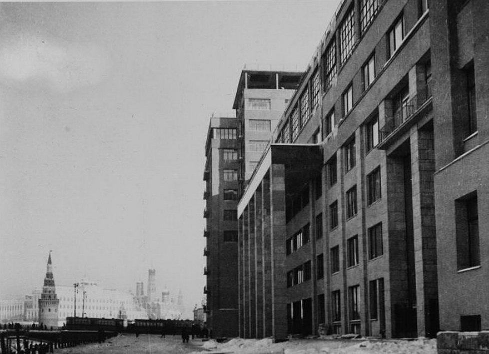 Особое место в архитектуре Москвы занимает 1-й Дом Совнаркома и ВЦИК — знаменитый «Дом на набережной». Он, расположенный прямо напротив Кремля, как символ мрачной предвоенной эпохи стал «главным героем» одноименного романа Юрия Трифонова. Этот жилой дом стал уникальным комплексом. 505 квартир, с новейшим для тех лет оборудованием, были заселены новой советской элитой — генералами, наркомами, деятелями культуры. Квартиры были служебными и многие из них не раз сменили жильцов, обыкновенно не по их собственной воле. Их непростой судьбе посвящен мемориальный музей, разместившийся в квартире №1. Была построена целая система обслуживания жителей: большой зрительный зал-клуб на 1200 мест, спортзал и крытые теннисные корты, кинотеатр, магазин-распределитель, амбулатория, почта, ясли, детский сад, солярий, библиотека, столовая, прачечная, обширные подвалы, где были устроены снеготаялка и мусоросжигательные печи.
