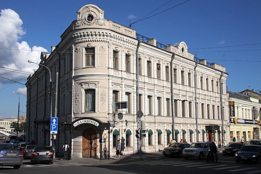 Главная история дома связана с винно-водочным королем Российской Империи Петром Арсеньевичем Смирновым. Сбоку дома до сих пор красуется надпись «Поставщик двора ЕГО ИМПЕРАТОРСКОГО ВЕЛИЧЕСТВА Петр Арсеньевич Смирнов».