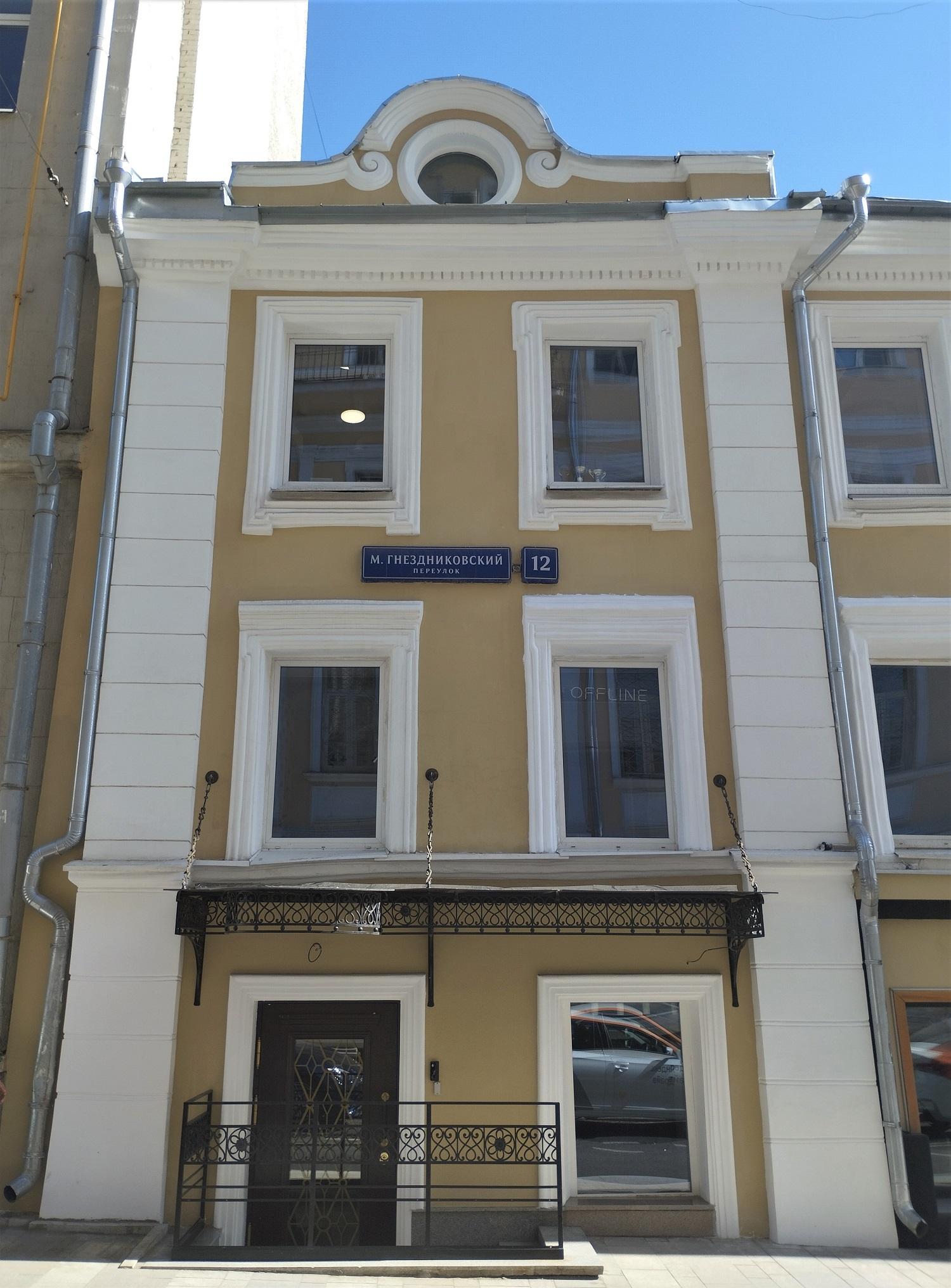 Если свернуть с шумной Тверской улицы в Малый Гнездниковский переулок, то почти сразу попадаешь в Москву времен Гиляровского и Чехова. Среди невысоких домов выделяется бывший Пушкинский театр. Напротив него – желтый трехэтажный дом с проездной аркой посередине, над аркой небогатый кокошник с круглым окном. У окон простые наличники, здание ничем не выделяется и не обращает на себя внимание. Такой была типовая московская застройка второй половины XIX века.