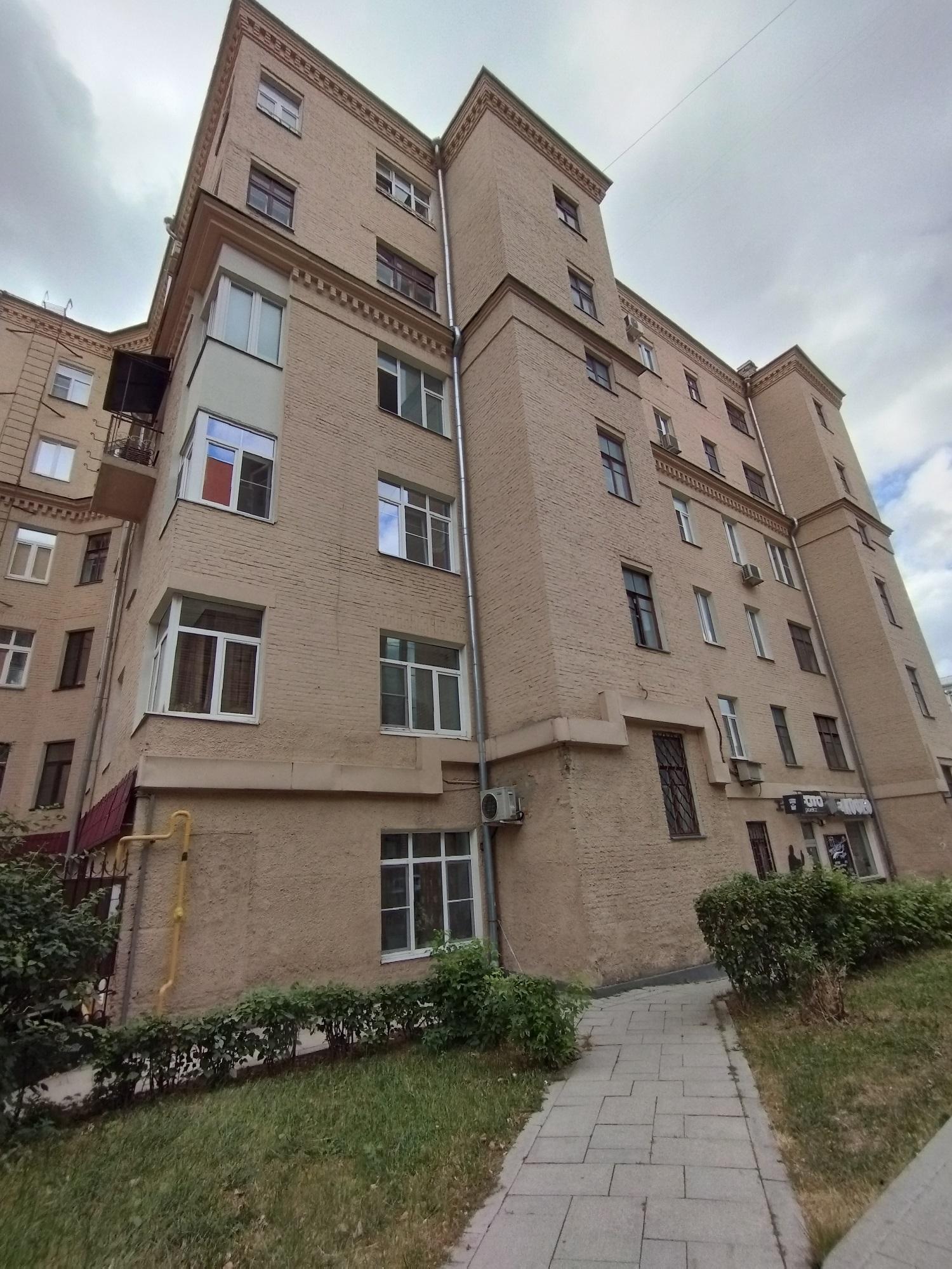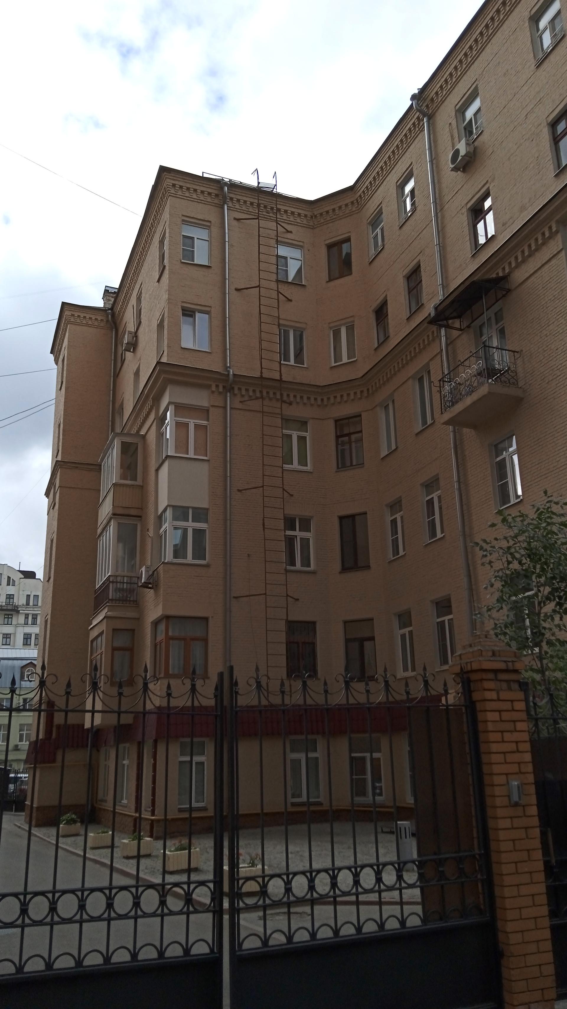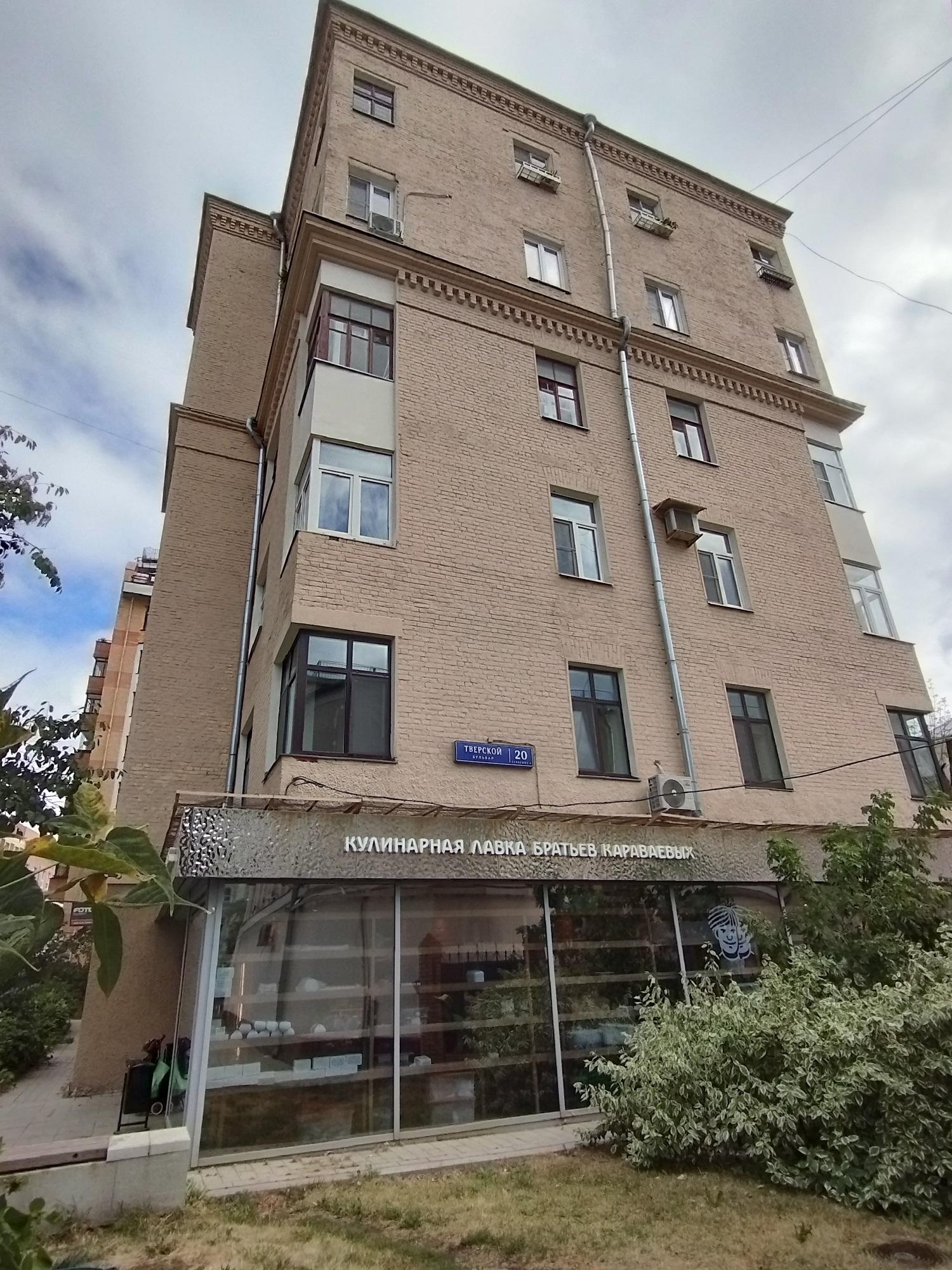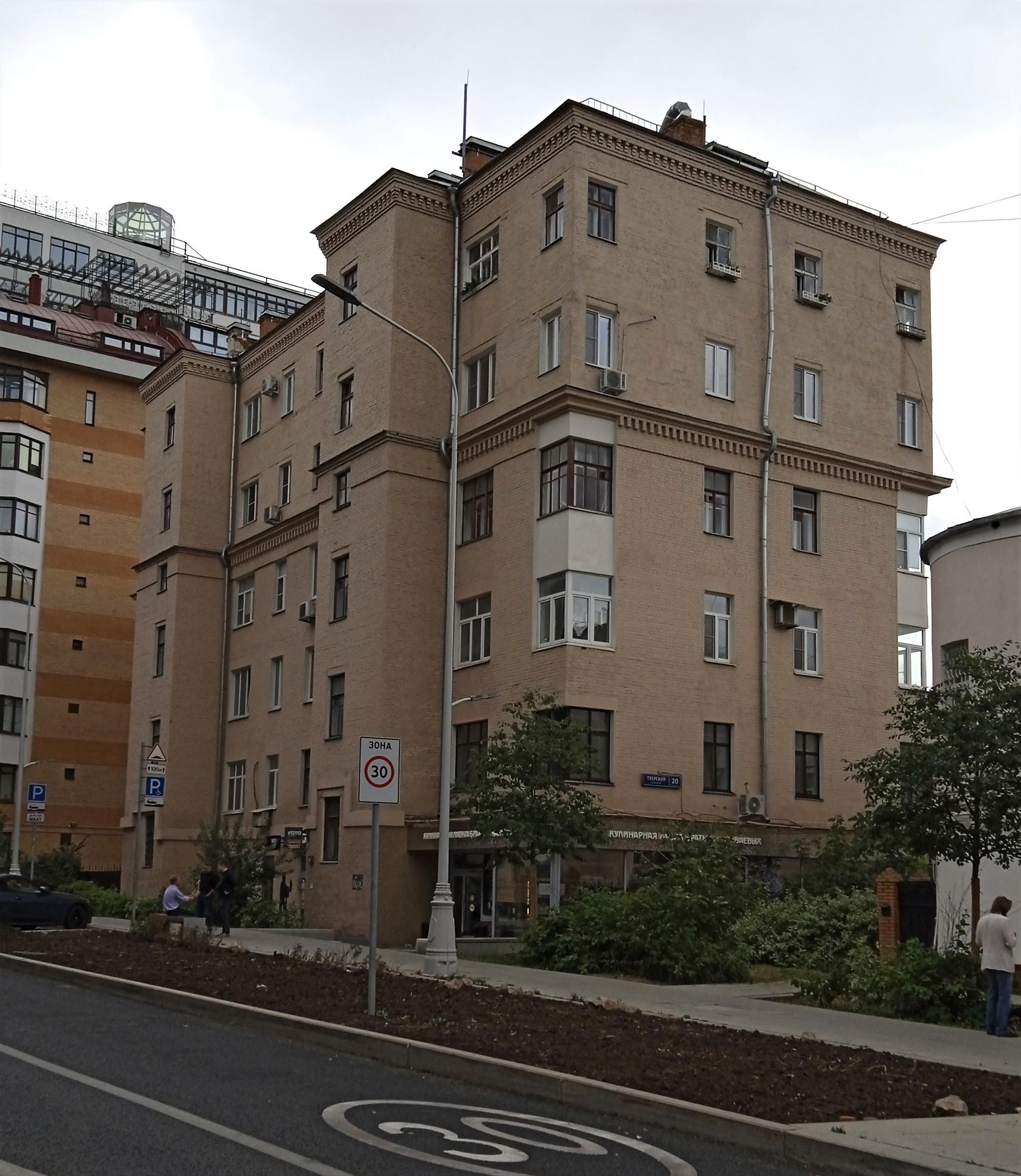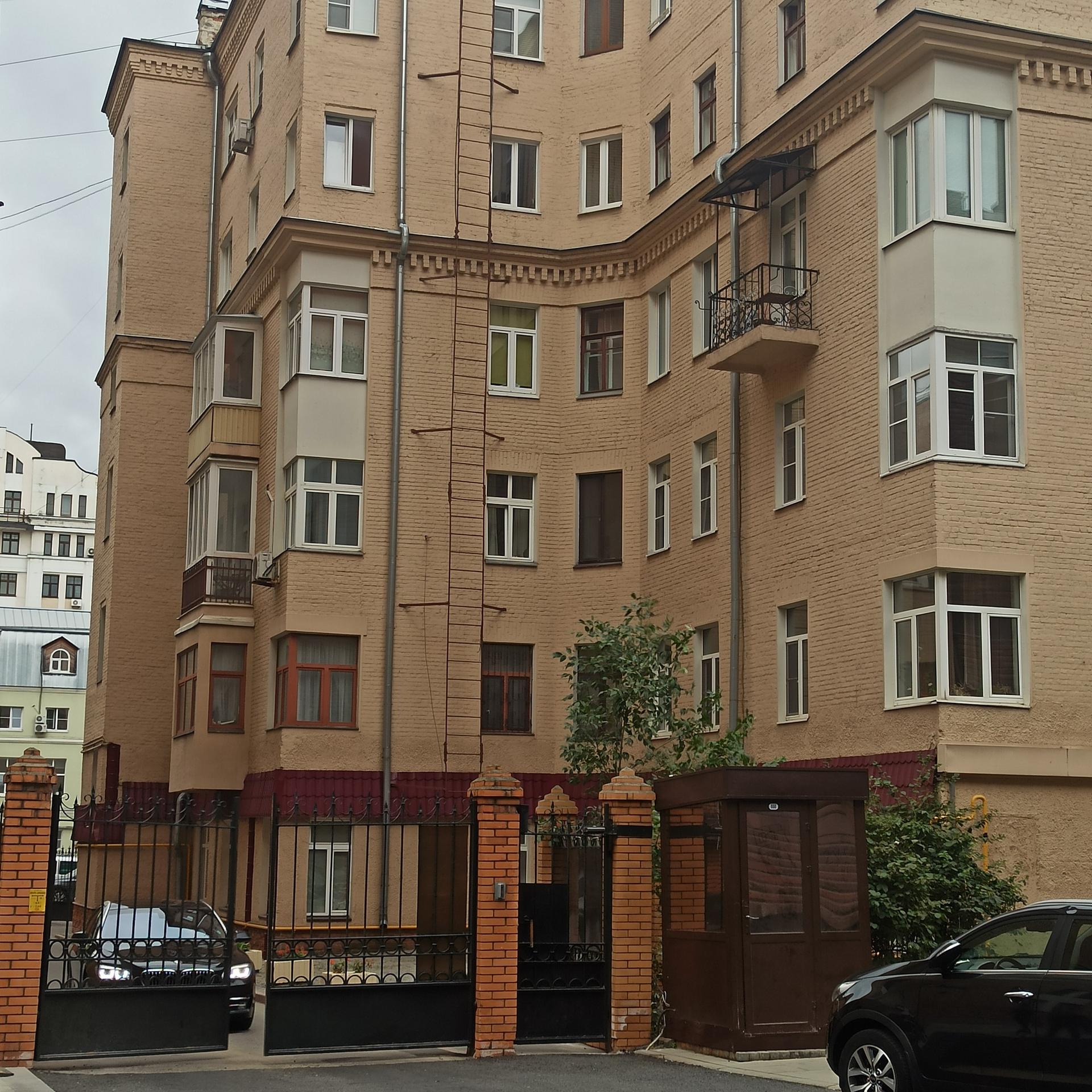 Здание было надстроено в 1941 г. двумя этажами. Два верхних этажа уже не имели угловых балконов. А в 1973 г. проезд к дому был открыт.
