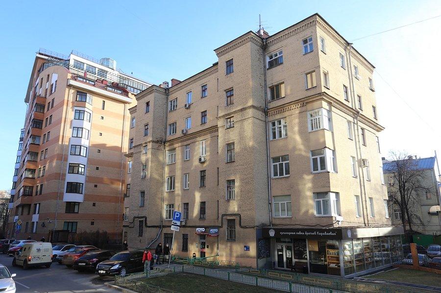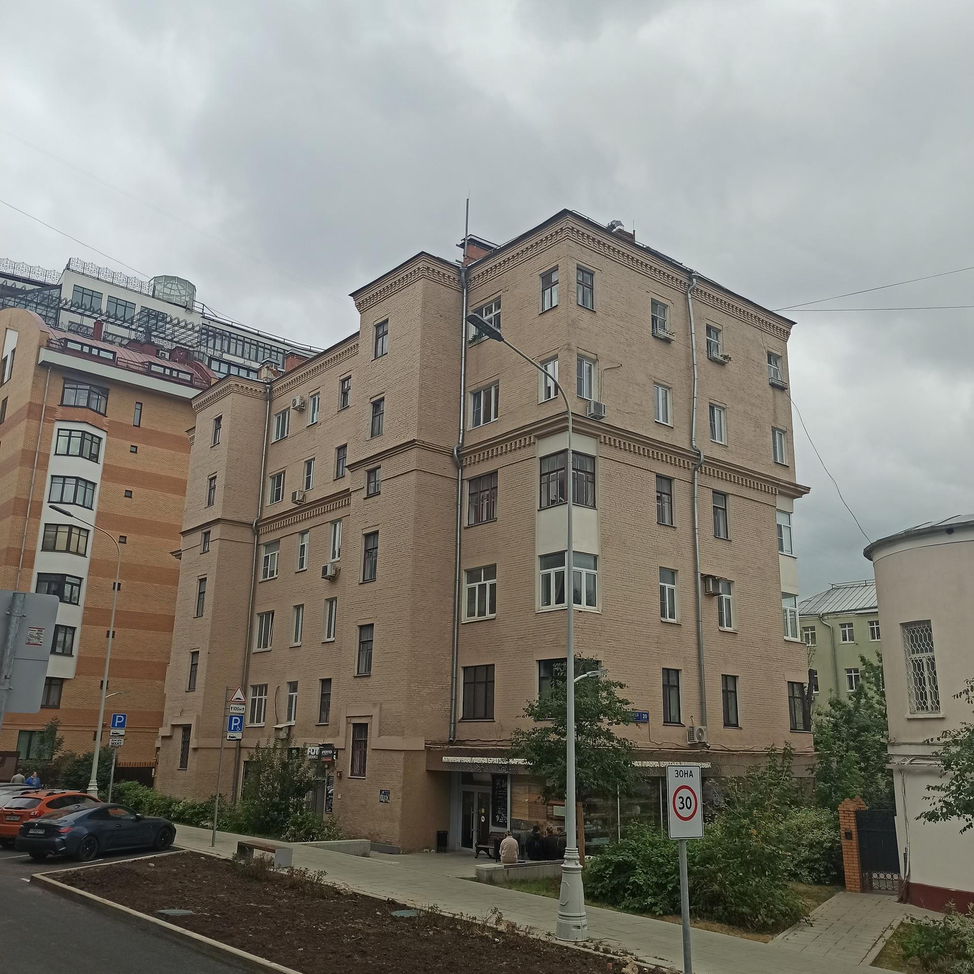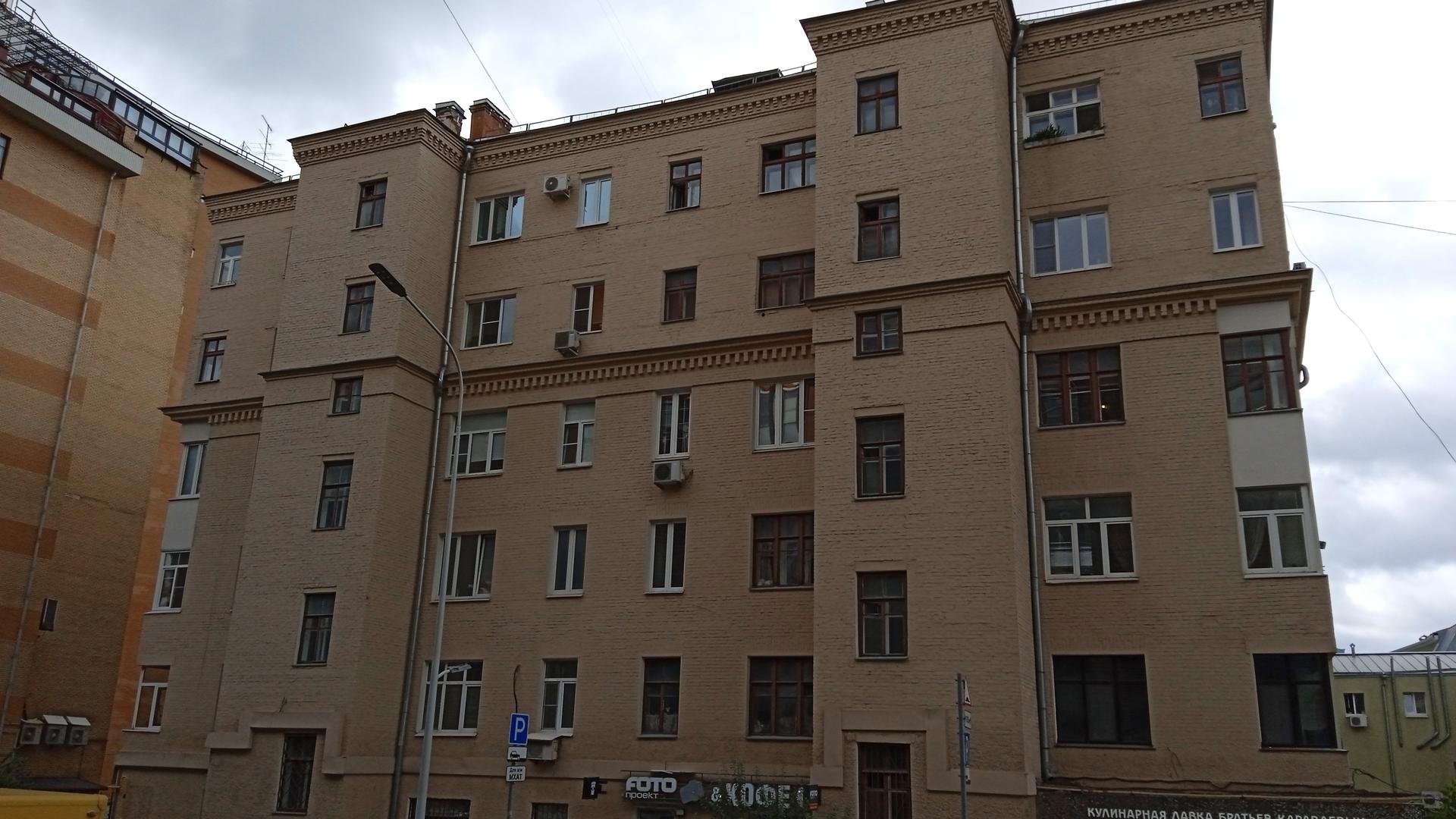 Это было время кооперативного строительства, в Москве появлялись дома-коммуны и просто жилые дома, заказчиками которых были РЖСК – Жилищно-строительные Кооперативы. Жуков строил свой дом для работников просвещения, он получил название «Первый шаг». Дом долгое время стоял в глубине участка, переулка Шведский тупик тогда не было. Проход к дому со стороны бульвар заслоняли старинные особняки. В 1937 г. кооперативы были ликвидированы как проявление частной собственности, но здание осталось, поменялся только собственник.