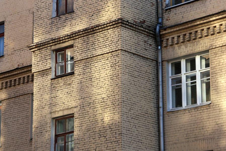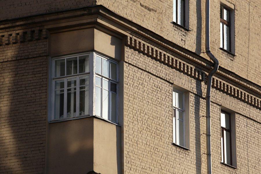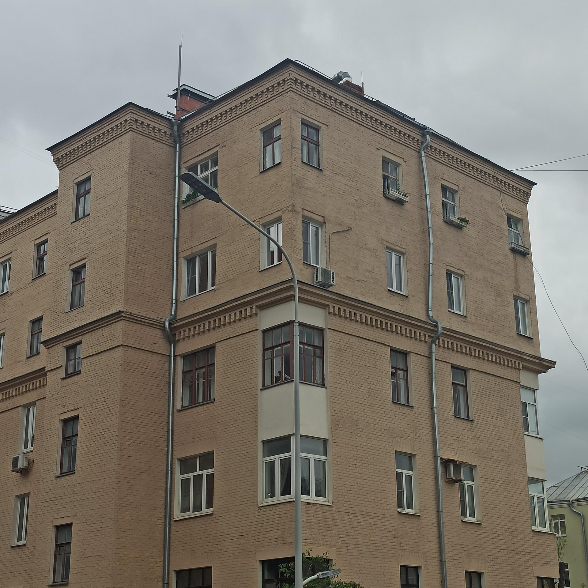 Четырехэтажный дом с угловыми балконами появился здесь в 1928-1931 гг. Проект принадлежал инженеру Н.С. Жукову. Это было время построек в стиле «авангард», Кирпичный дом не имел украшений, только угловые балконы делали его интересным и необычным.