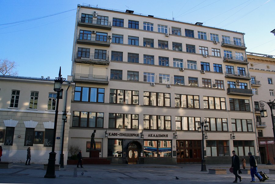 Сейчас первый этаж занимает пиццерия, а квартирах по-прежнему живут люди, и им необязательно быть писателями.