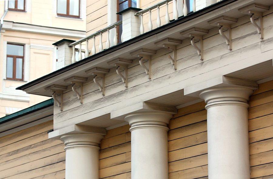 Композиционный центр здания — шестиколонный портик тосканского ордера, типичный для домов «деревянного классицизма». От собратьев дом Поливанова отличается разве что отсуствием лепнины.