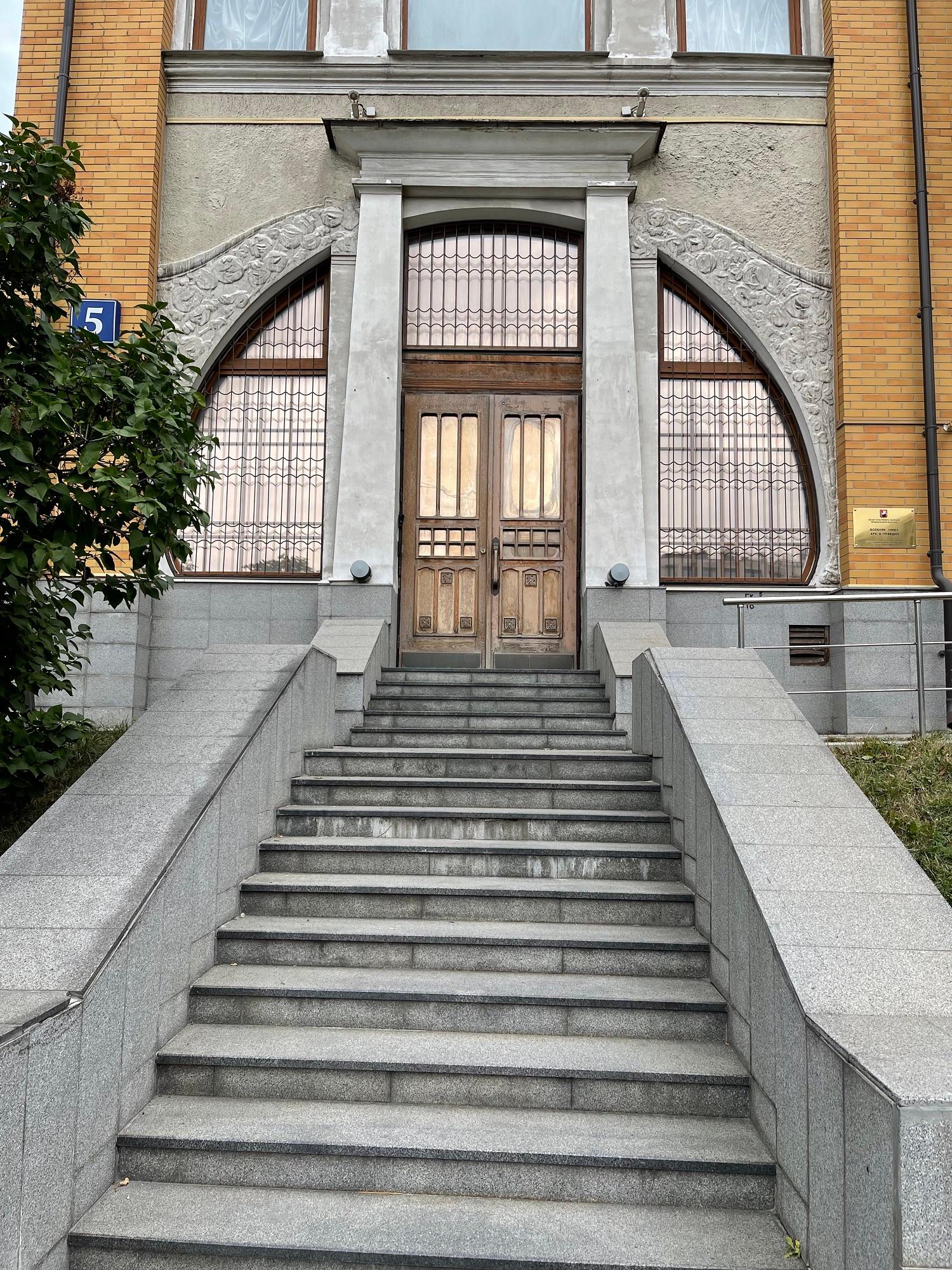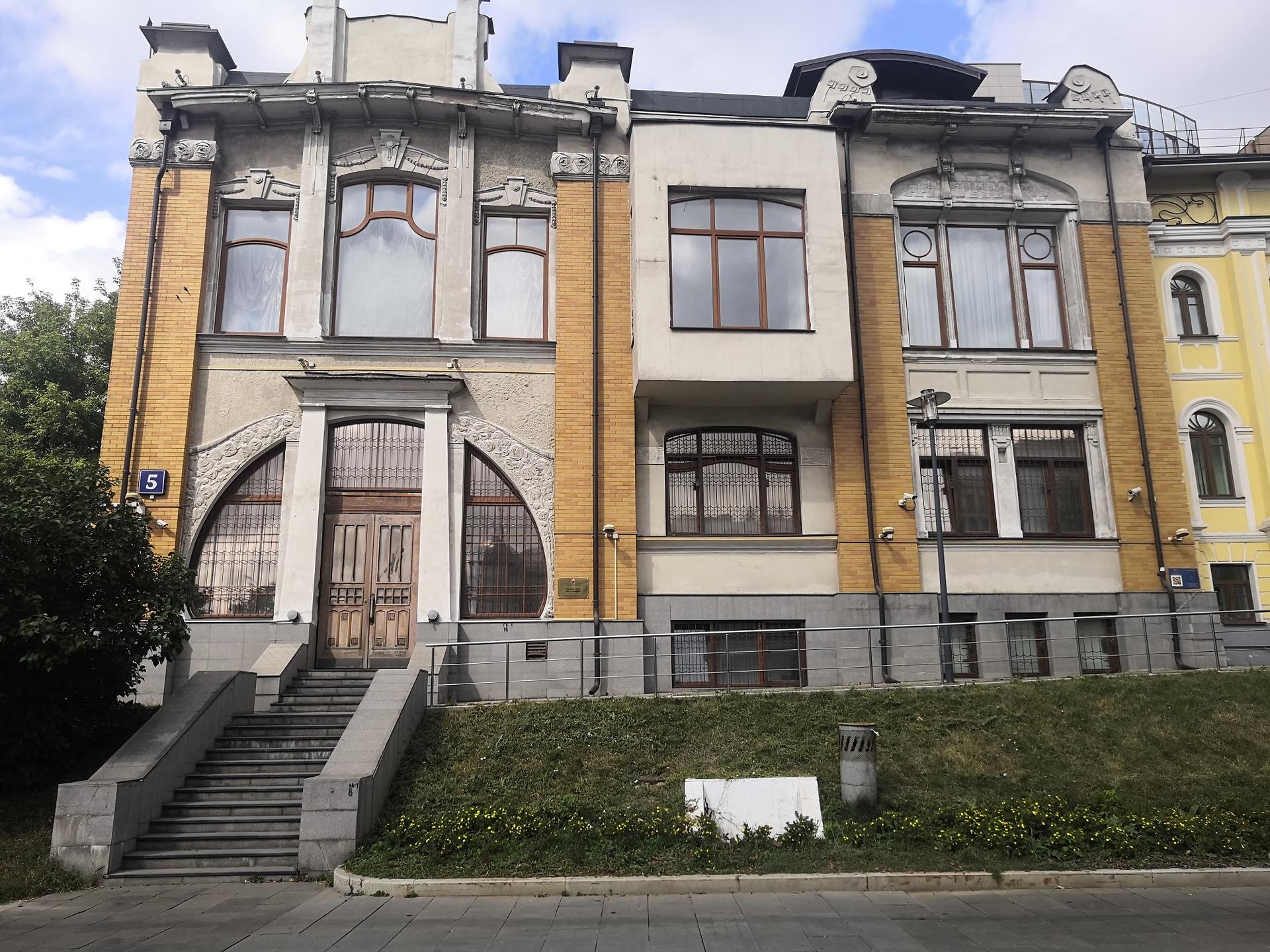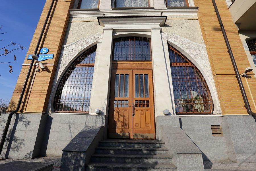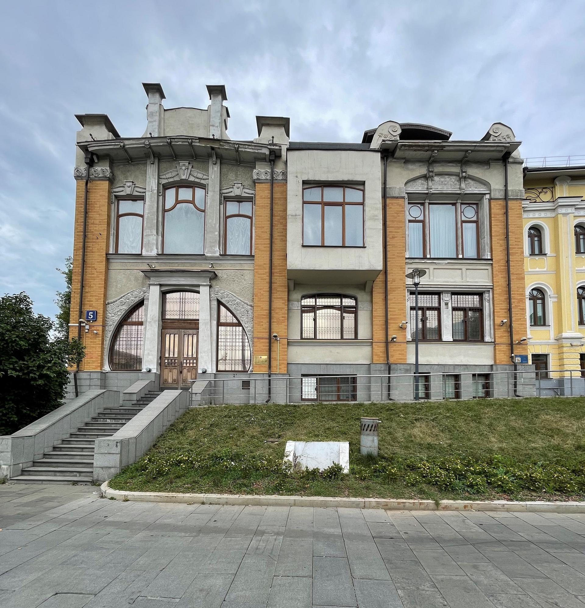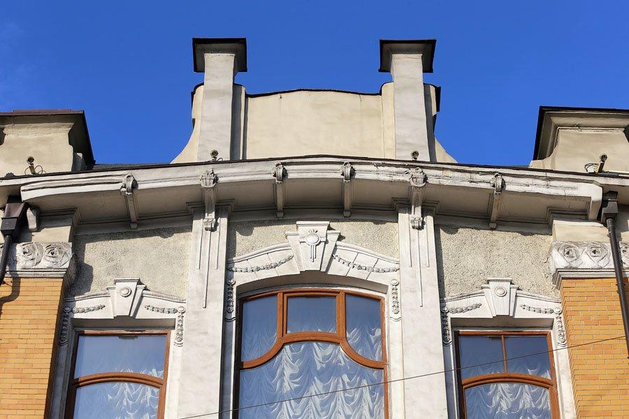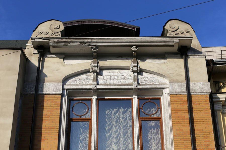 Особую нарядность фасаду особняка в стиле модерн придают черты австрийского «Сецессиона»: трехчастная композиция входа в стиле Йозефа Ольбриха – одного из основоположников архитектуры модерна, и стилизованные изображения роз в духе известного австрийского художника Ганса Кристиансена.