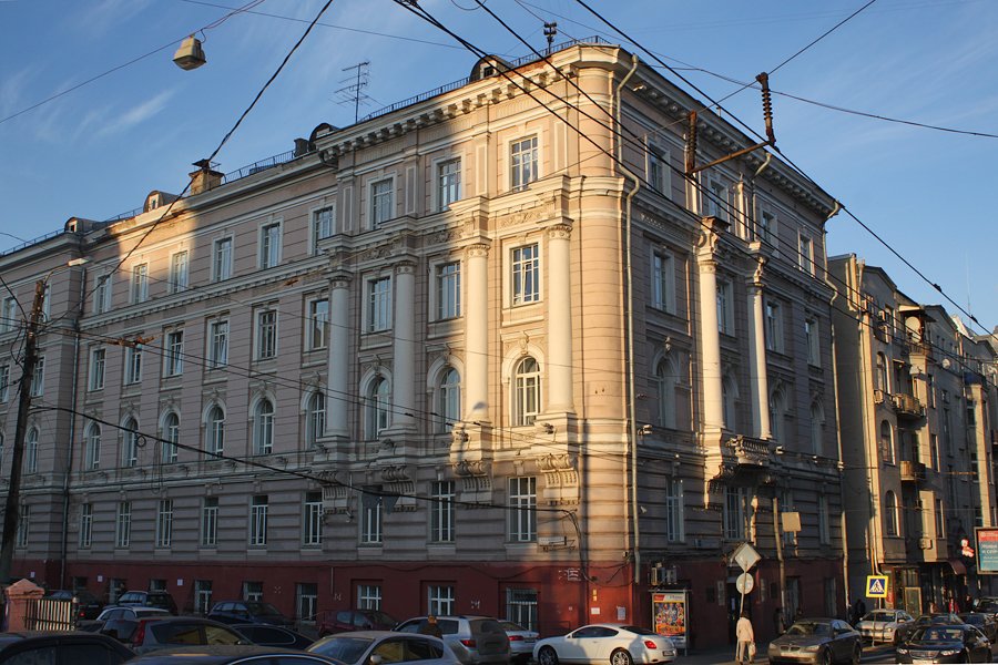 Ныне существующее мощное и протяжённое здание, оформляющее угол Старой Басманной улицы и Басманного тупика, было построено в 1898-1899 годах по проекту архитектора Н. И. Орлова (автора старого здания Курского вокзала) и инженера М. А. Аладьина, которые являлись штатными архитекторами Московско-Курской железной дороги, для правления Московско-Курской и Нижегородско-Муромской железных дорог. Здесь располагались как управление службы дорог, так и квартиры железнодорожных служащих. Часть помещений использовалась как доходная и сдавалась внаём.