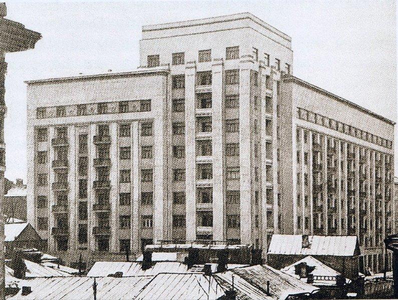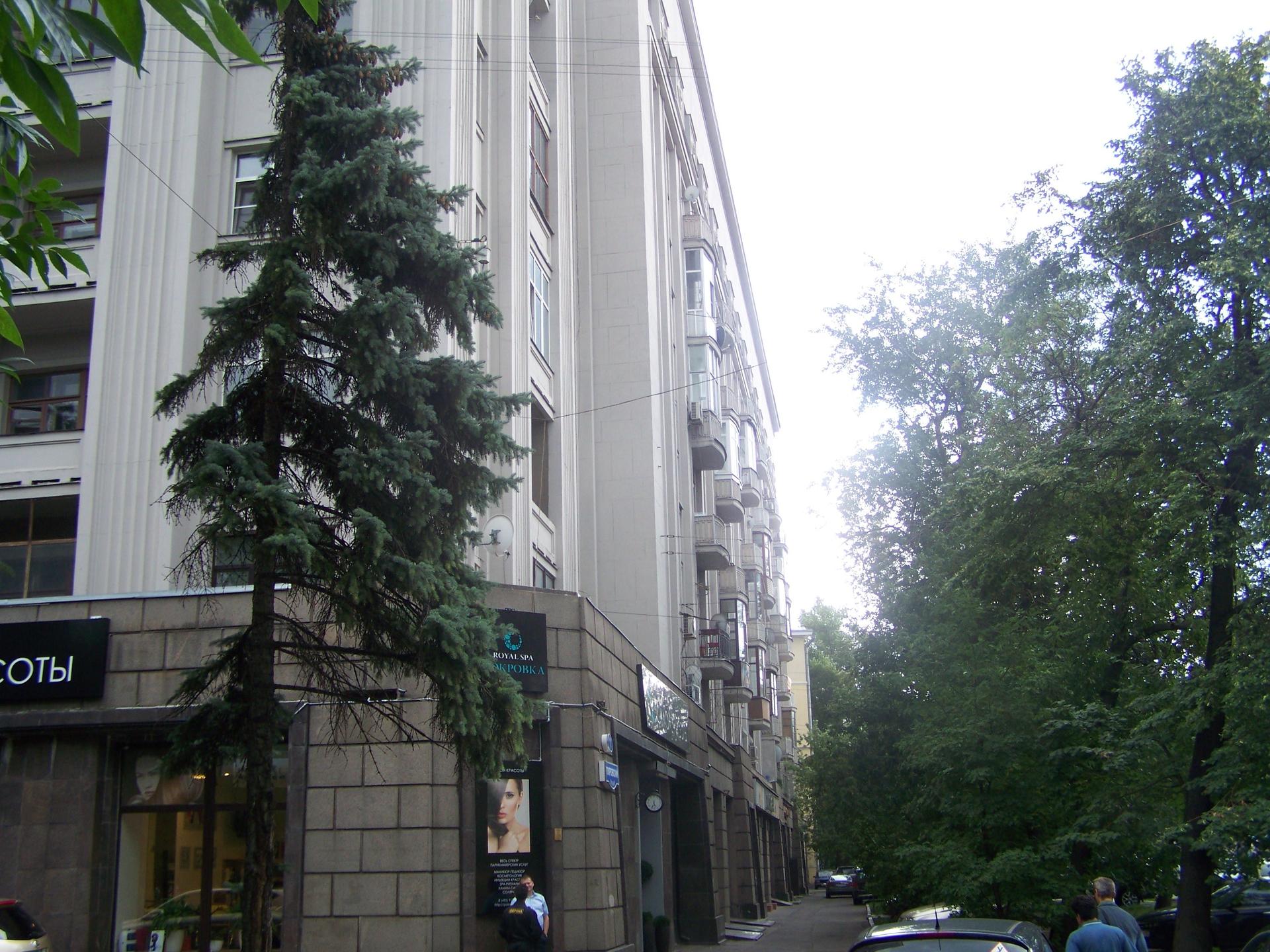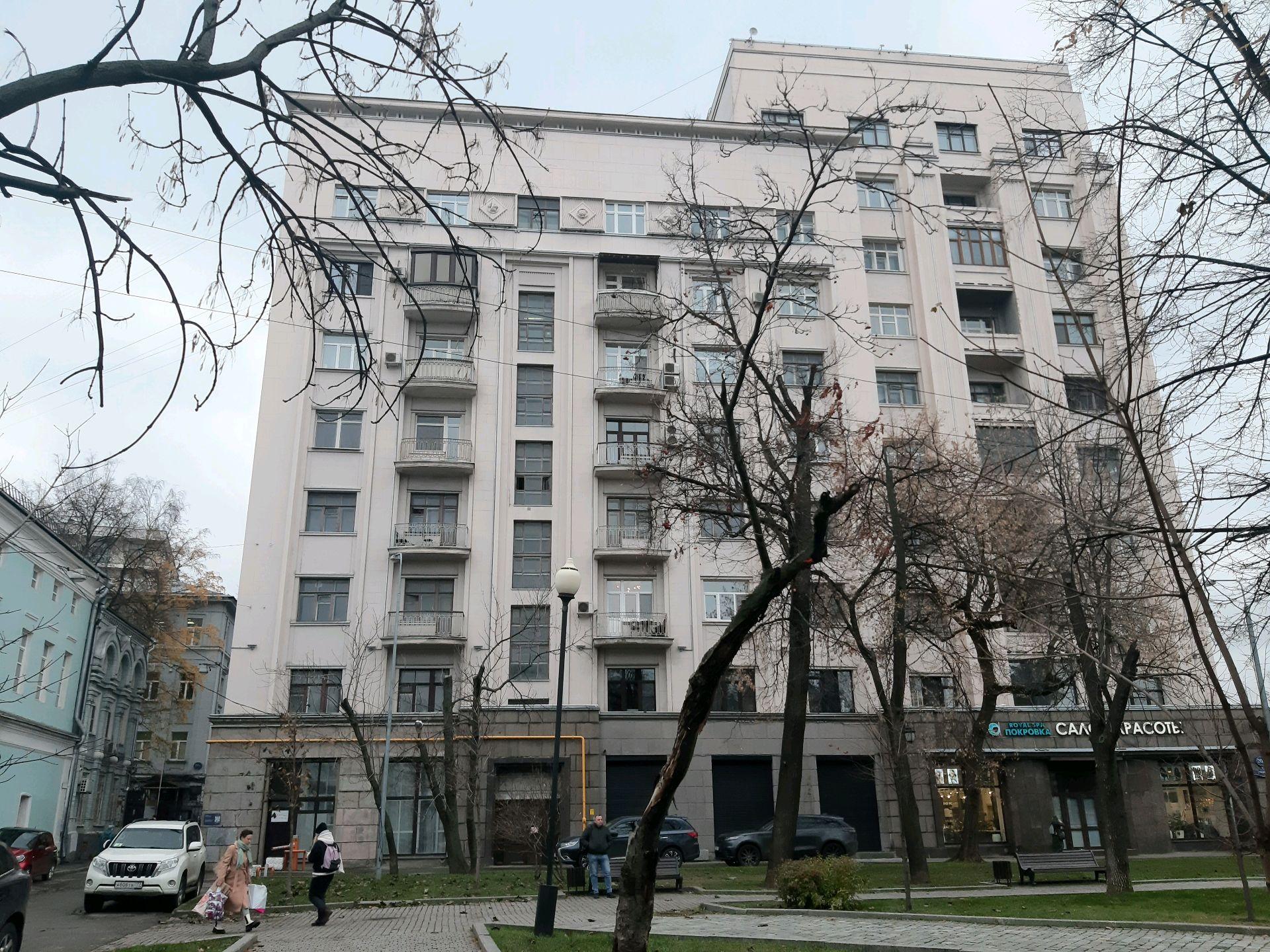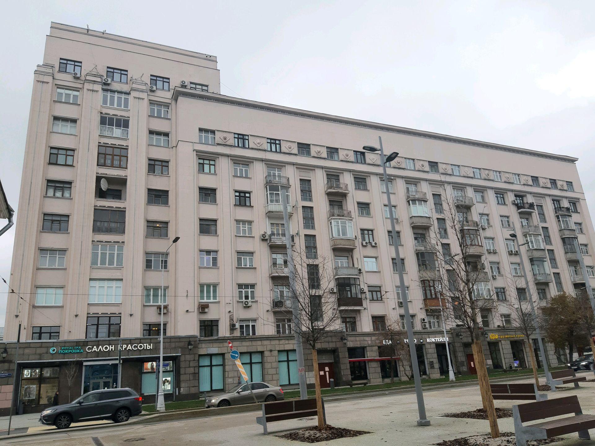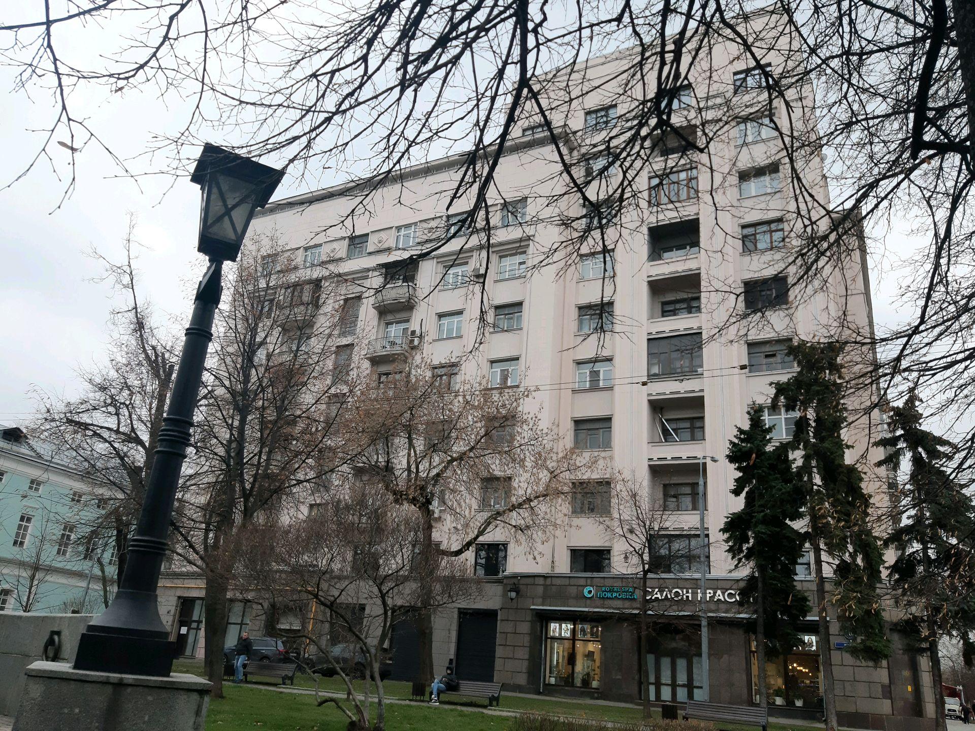 На месте пересечения Бульварного кольца с улицей Покровка, там, где недавно появился архо-парк амфитеатр с фрагментом стены Белого города, а в просторечье «Яма» на Хохловской площади уже почти 90 лет (1936 г. постройки) стоит большой жилой дом в стиле «постконтруктивизма».