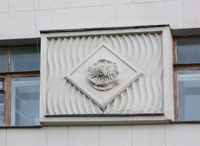 Монументален и декор парадных подъездов – массивные створы двойных внешних дверей, врезные и выпуклые барельефы, мраморная облицовка придают торжественность всему строению. Впечатляют сохранившиеся во всех парадных подъездах оригинальные двойные деревянные створчатые тамбурные двери в проемах в первоначальном материале и виде.