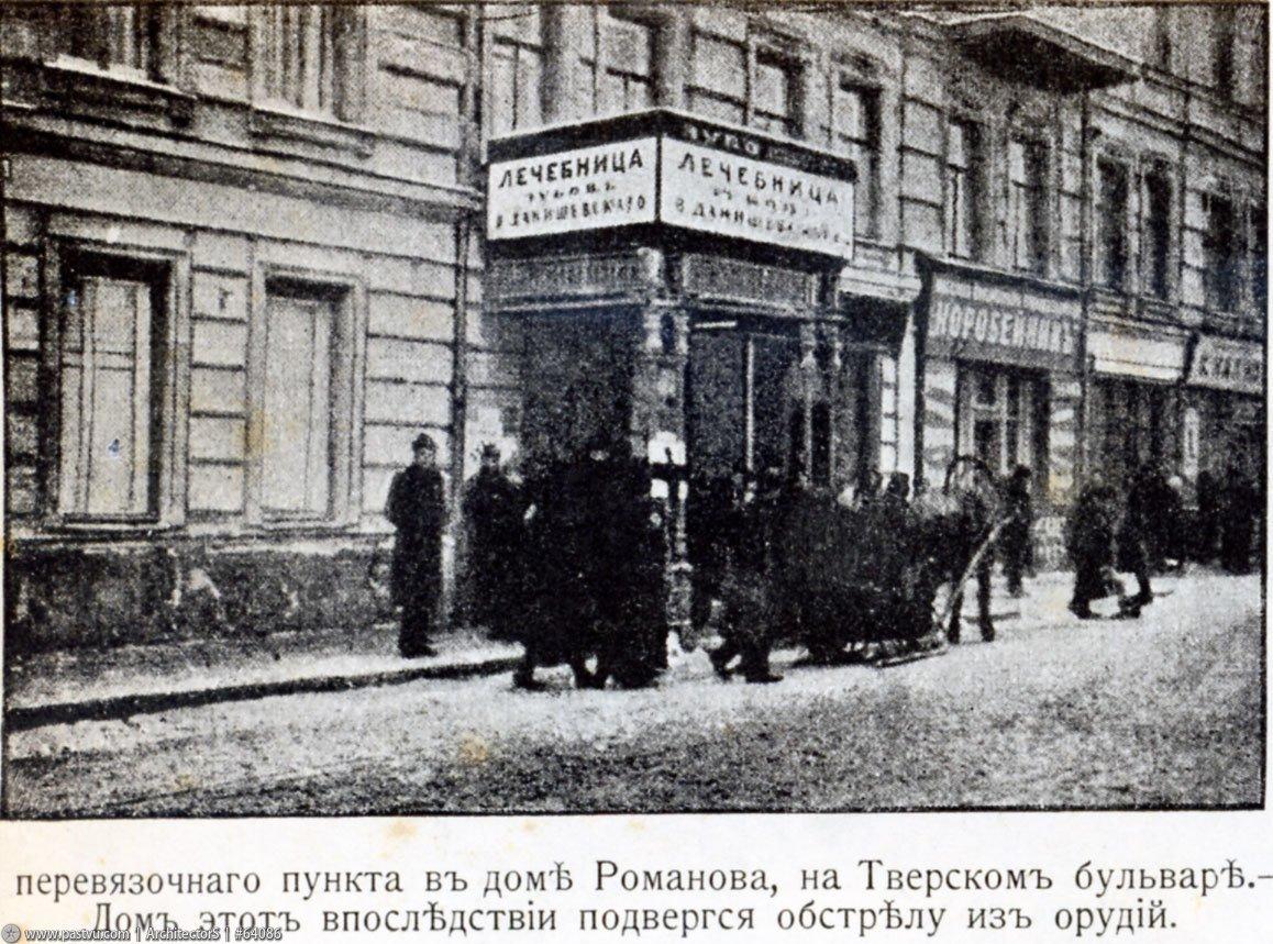 Дом под номером 7 по Тверскому бульвару известен как Дом Романова или Романовка, дом меблированных комнат, где жили студенты.