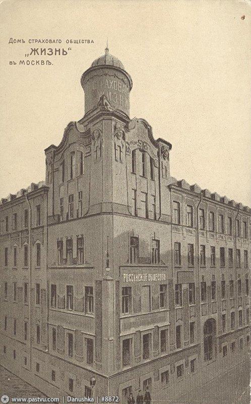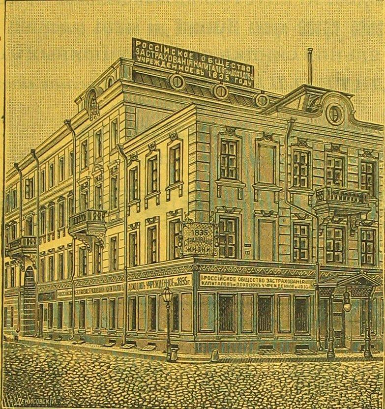 В 1898 г. этот участок приобрело российское общество застрахования капиталов и доходов «Жизнь», учрежденное в 1835 г. В 1904–1905 гг. новые владельцы построили доходный дом по проекту архитектора Вильгельма Вильгельмовича Шауба. Первоначально он был четырехэтажным, затем надстроен еще двумя этажами.