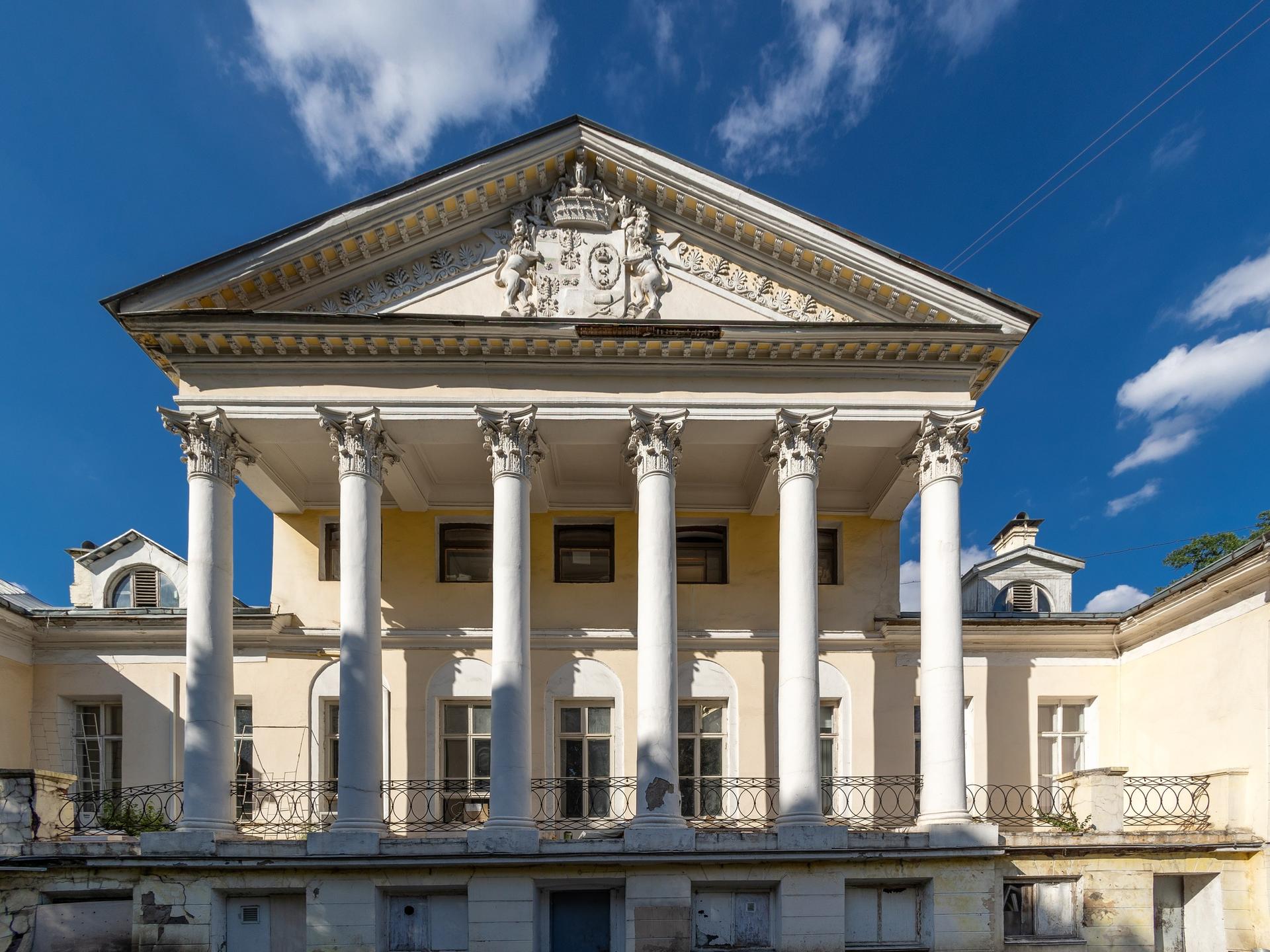 Усадьба начала формироваться в 1756 году, когда И.И. Воронцов-Вельяминов построил небольшой дом с угловыми пилястрами по линии Большой Никитской. В 1770-х годах владение перешло к Долгоруковым, при которых усадьба была расширена до Поварской улицы. Они построили два симметричных служебных корпуса по краям главного дома с круглыми угловыми помещениями. На рубеже XVIII—XIX веков главный дом усадьбы был надстроен мезонином, украшен двумя портиками и получил строгое классическое оформление фасадов.