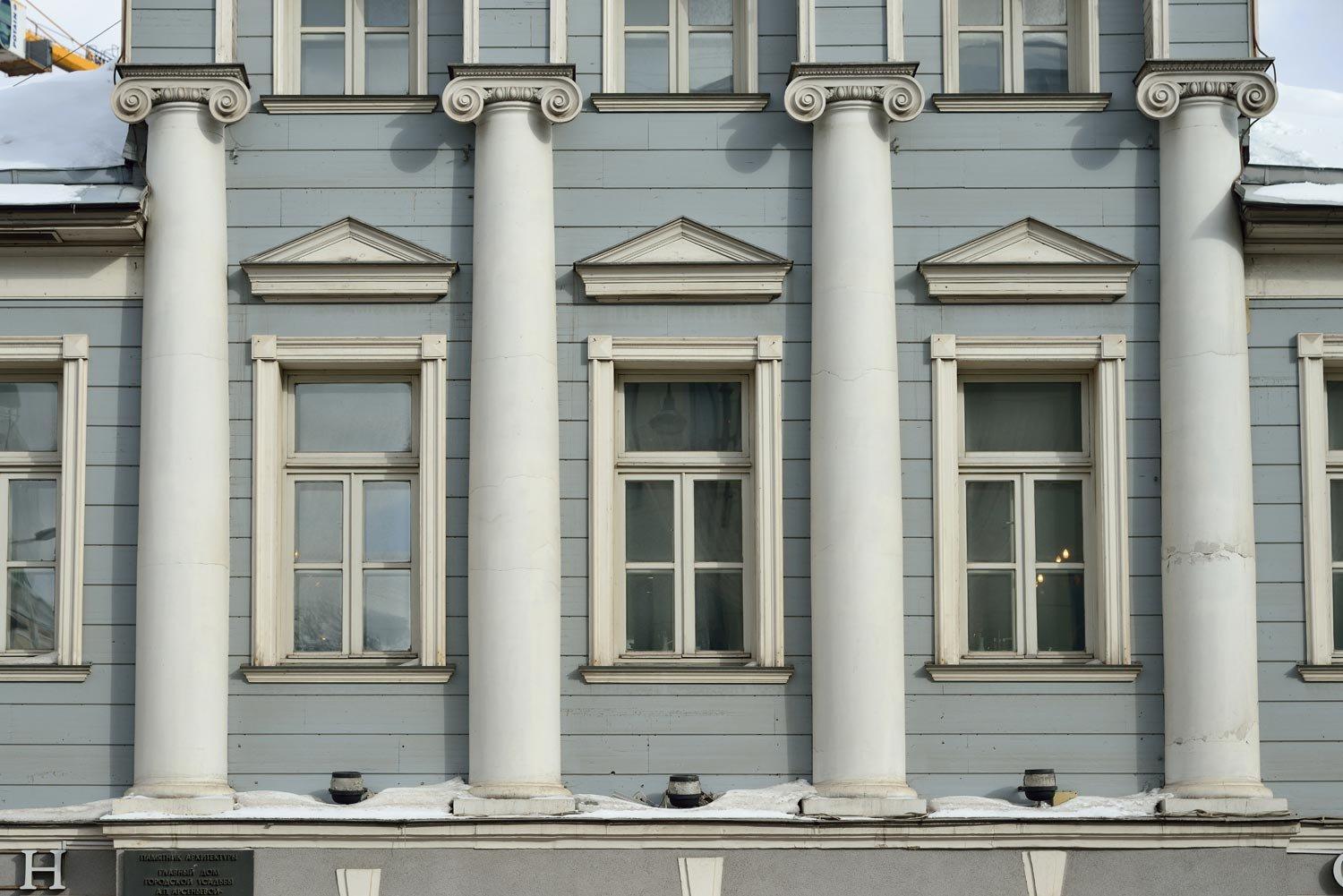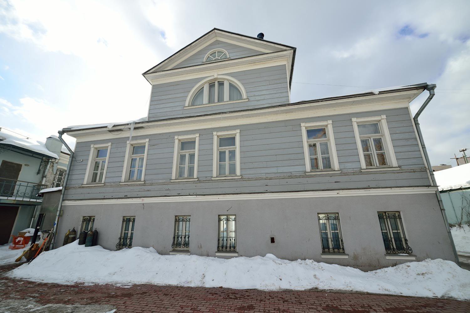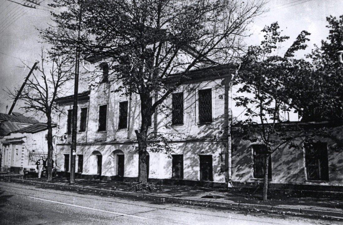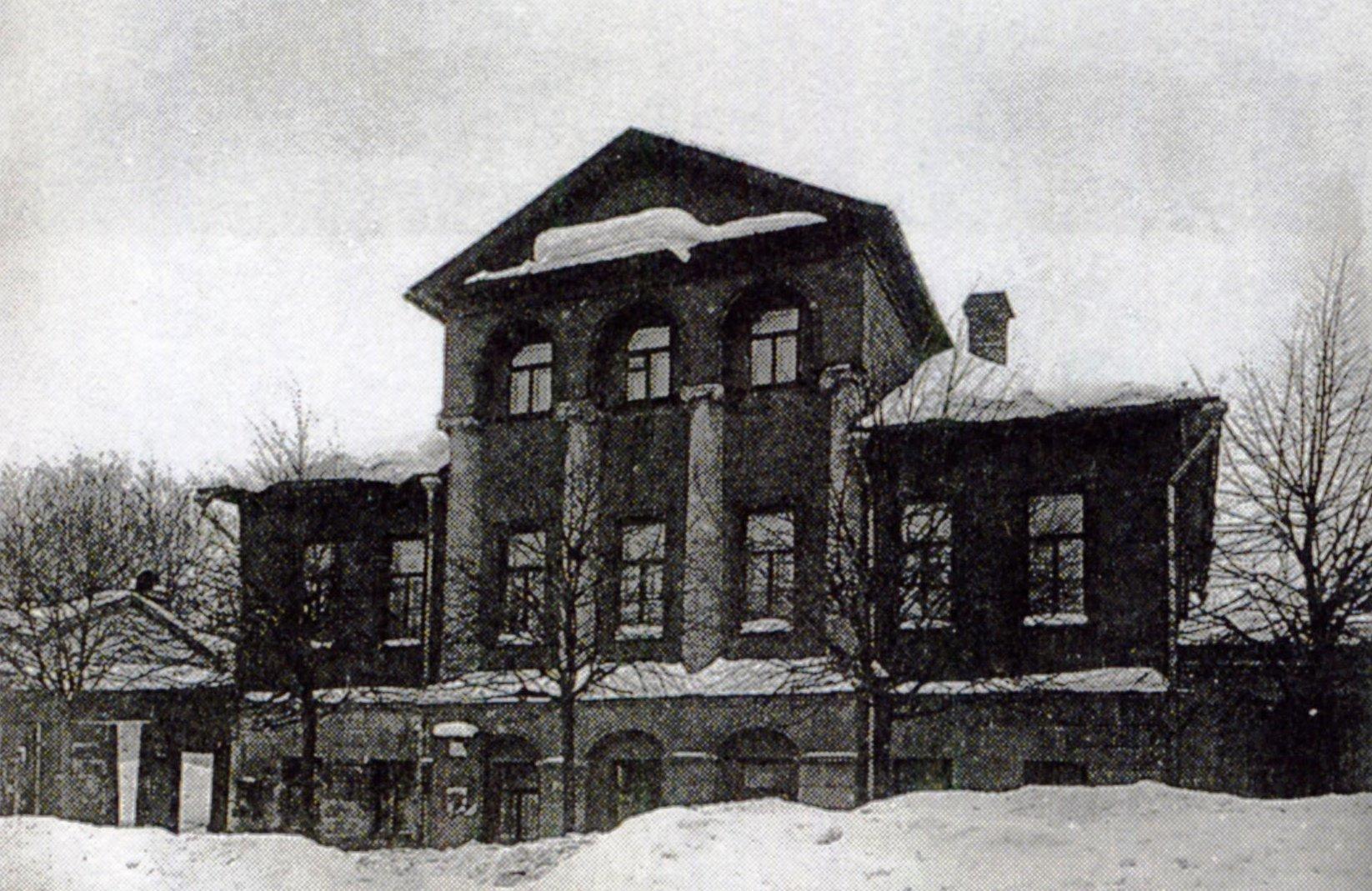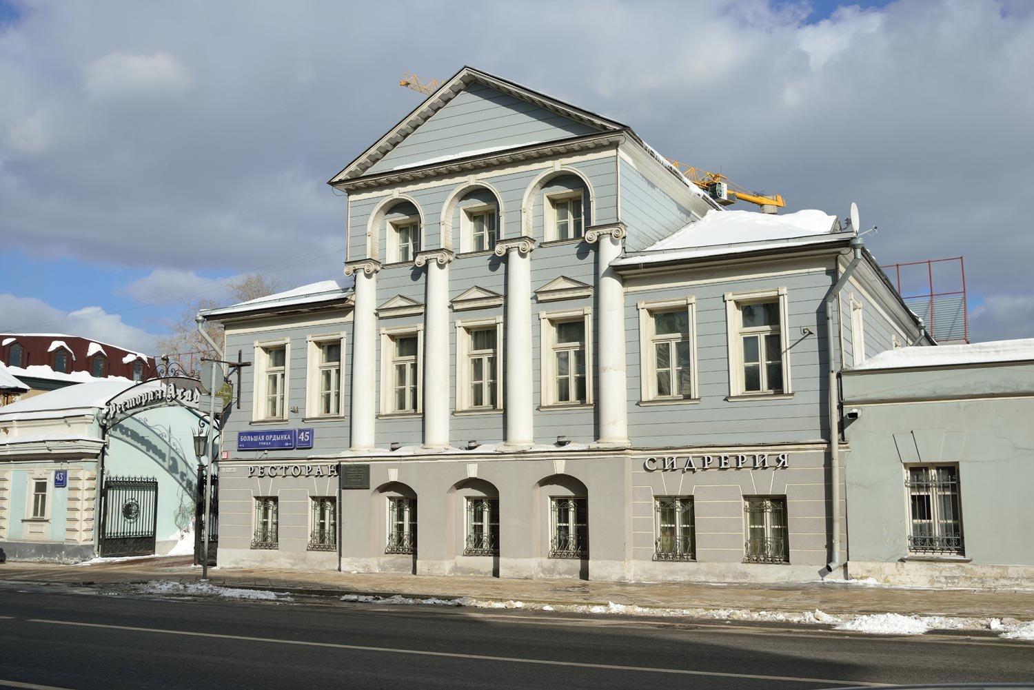 Усадьба в этой части Замоскворечья сформировалась к середине XVIII столетия. На плане Горихвостова 1767 года показаны несколько небольших строений. Интересующее нас двухэтажное здание с мезонином было построено по красной линии Большой Ордынки после пожара 1812 года как главный дом городской усадьбы. Не исключено, что нижний ярус с цоколем из белого камня – часть предыдущего здания XVIII века, которое стояло на этом месте до нашествия Наполеона. Украшения парадного фасада характерны для позднего московского классицизма: центральная часть выделена портиком ионических полуколонн и треугольным фронтоном мезонина. Разделение дома на два этажа – нижний каменный и верхний деревянный – тоже типично для той эпохи.