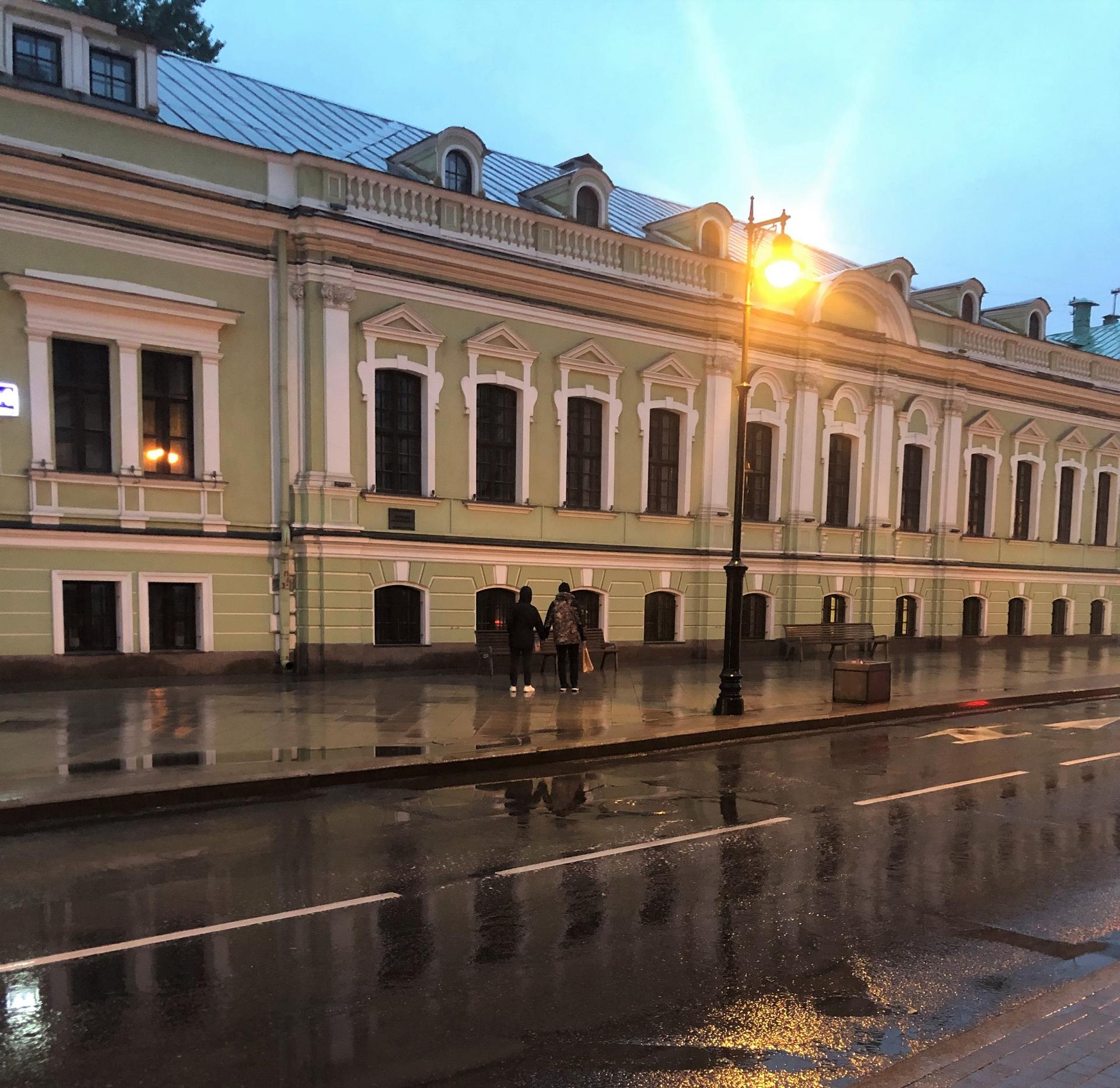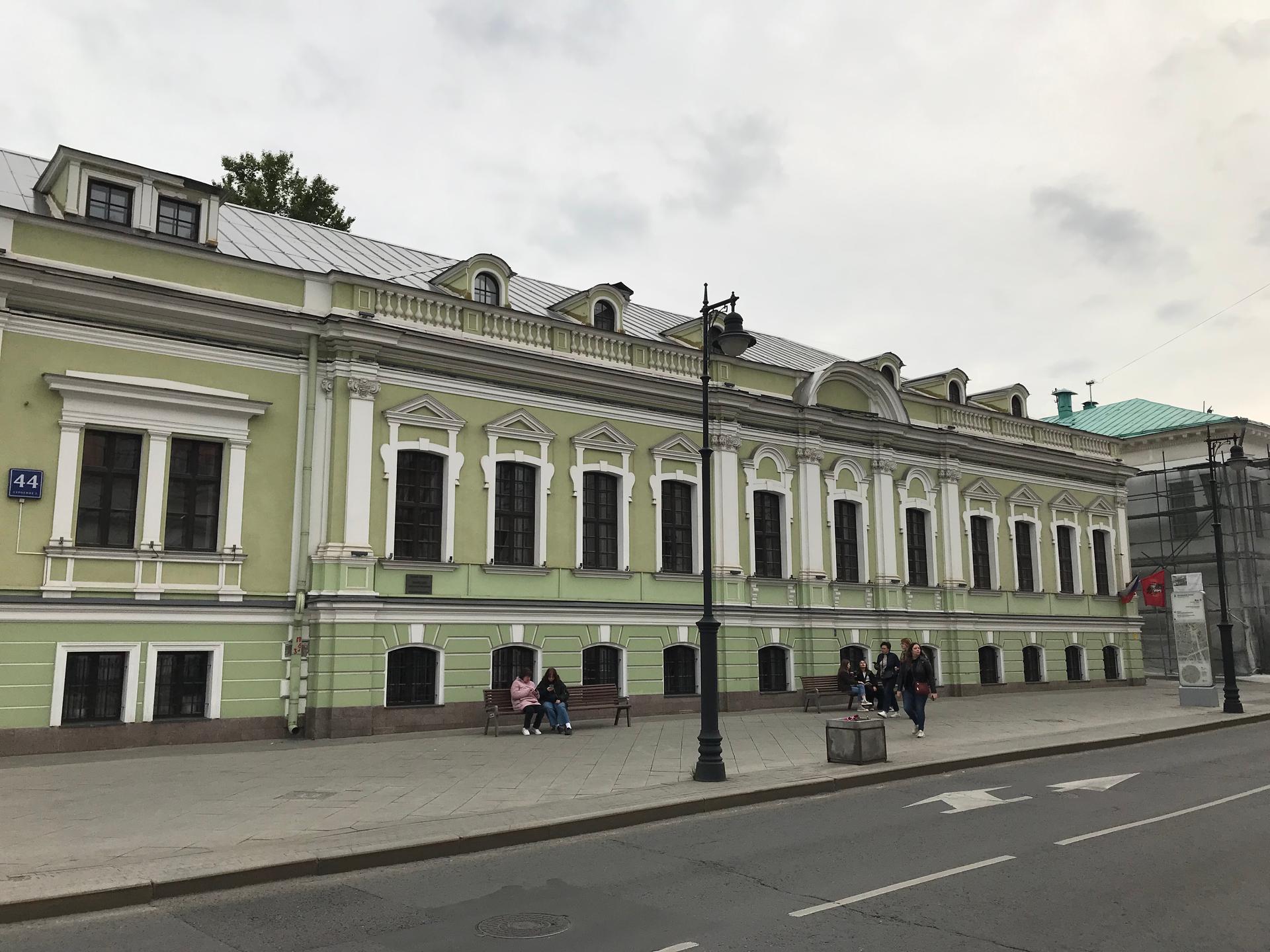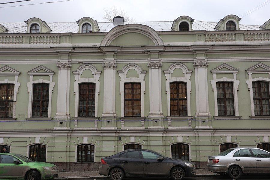 С конца XVII века это владение за Мясницкими воротами принадлежало дяде Петра I Льву Кирилловичу Нарышкину. Скорее всего, в начале следующего столетия здесь были построены прямоугольные в плане каменные палаты. Сам земельный участок имел для своего времени довольно внушительные размеры, доходя до Большого Козловского переулка и объединяя современные владения 44 и 46.