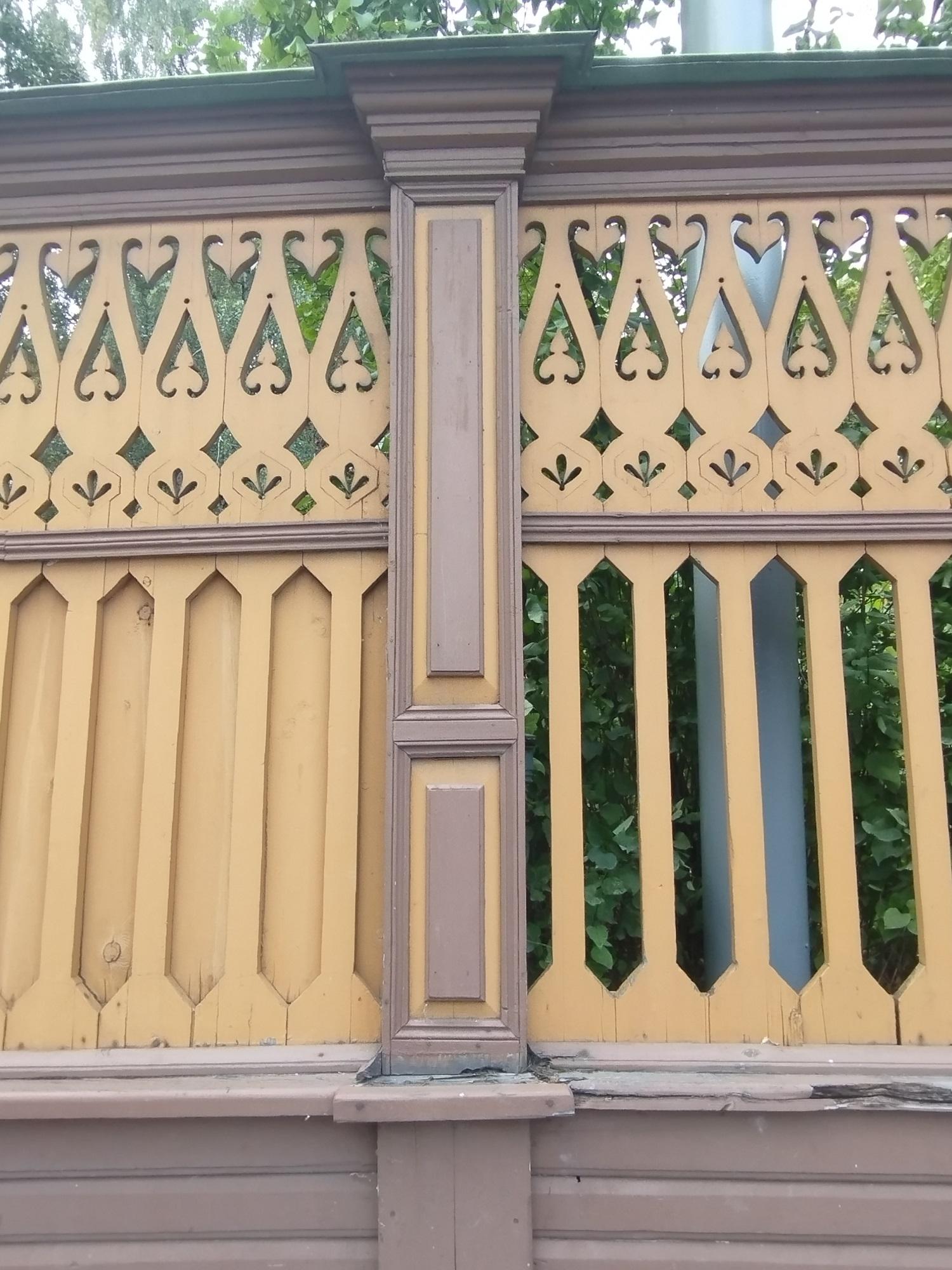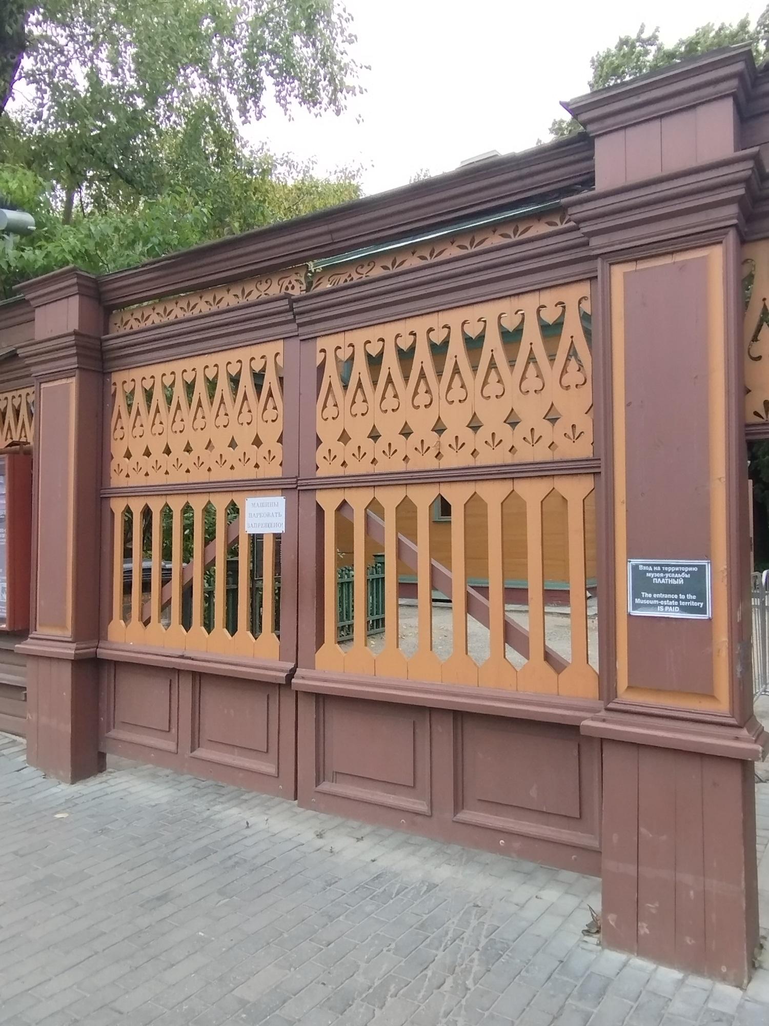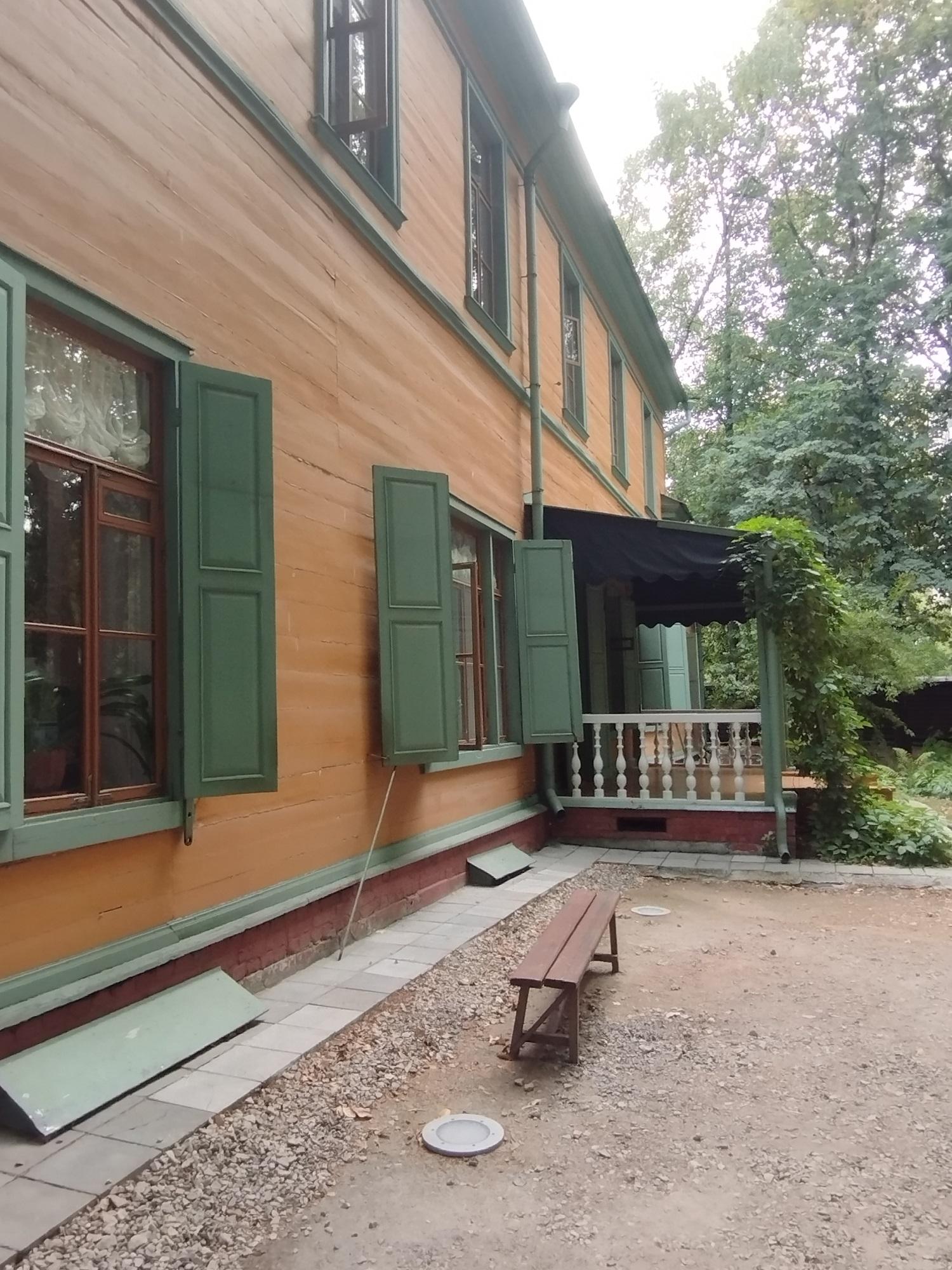 Усадебный дом был старинный, деревянный. Его пощадил московский пожар 1812 года. Так он и стоит, огороженный затейливым деревянным забором, такой же, как и в 1805 году, когда его построили. Вокруг усадьбы сохранились дворовые службы и даже кусочек прекрасного сада, который некогда простирался между Долго-Хамовническим и Олсуфьевским переулками.