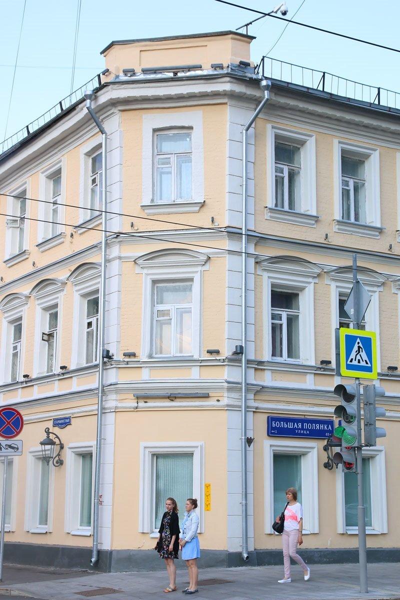 Трехэтажный доходный дом «кирпичного стиля» построен во второй половине XIX века во владении коллежского советника Адольфа Ивановича Тольха. Он оформляет угол Старомонетного переулка и Большой Полянки. Старомонетный переулок выходит на улицу Большую Полянку невдалеке от здания бывшей церкви Успения «что в Казачьей». Дом выстроен углом, два его фасада по улице и переулку практически равнозначны. Угловой фасад срезан и оформлен прямоугольным аттиком.