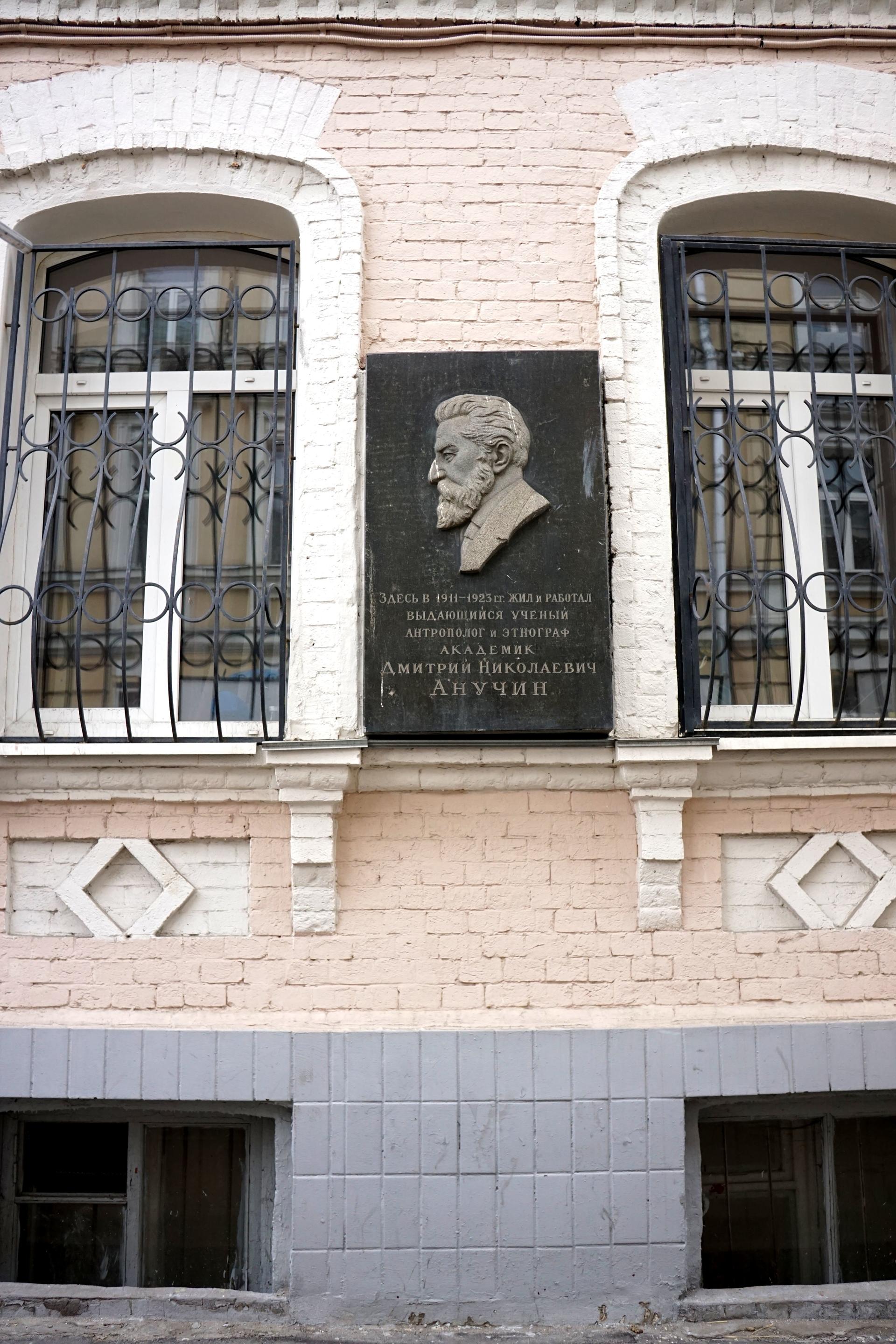 В 1910-х гг. одну из квартир арендует знаменитый русский ученый, антрополог, этнограф, археолог и музеевед Д. Н. Анучин. Дмитрий Николаевич был профессором и почетным членом Московского университета и являлся основоположником научного изучения географии, антропологии и этнографии в России. Был товарищем председателя Московского археологического общества, способствовал выведению археологических изысканий из любительского на профессиональный уровень. Создал музеи географии и антропологии при университете. Основал новый научный раздел – озероведение (лимнологию), положив начало систематическому изучению рельефа озер России. Автор многочисленных научных трудов, некоторые из которых до сегодняшнего времени являются наиболее фундаментальными по отдельным вопросам.