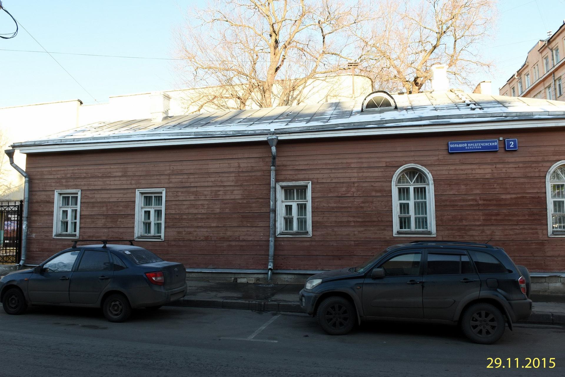 Рядом с бывшим домом настоятеля находится еще один чудом сохранившийся одноэтажный деревянный домик (д. 4) с оградой и воротами. Главный фасад дома, выходящий на Большой Предтеченский переулок, богато декорирован деревянной резьбой: окна оформлены наличниками с подзорами и фигурными накладками. Особую выразительность зданию придает венчающий карниз с кронштейнами и орнаментом.