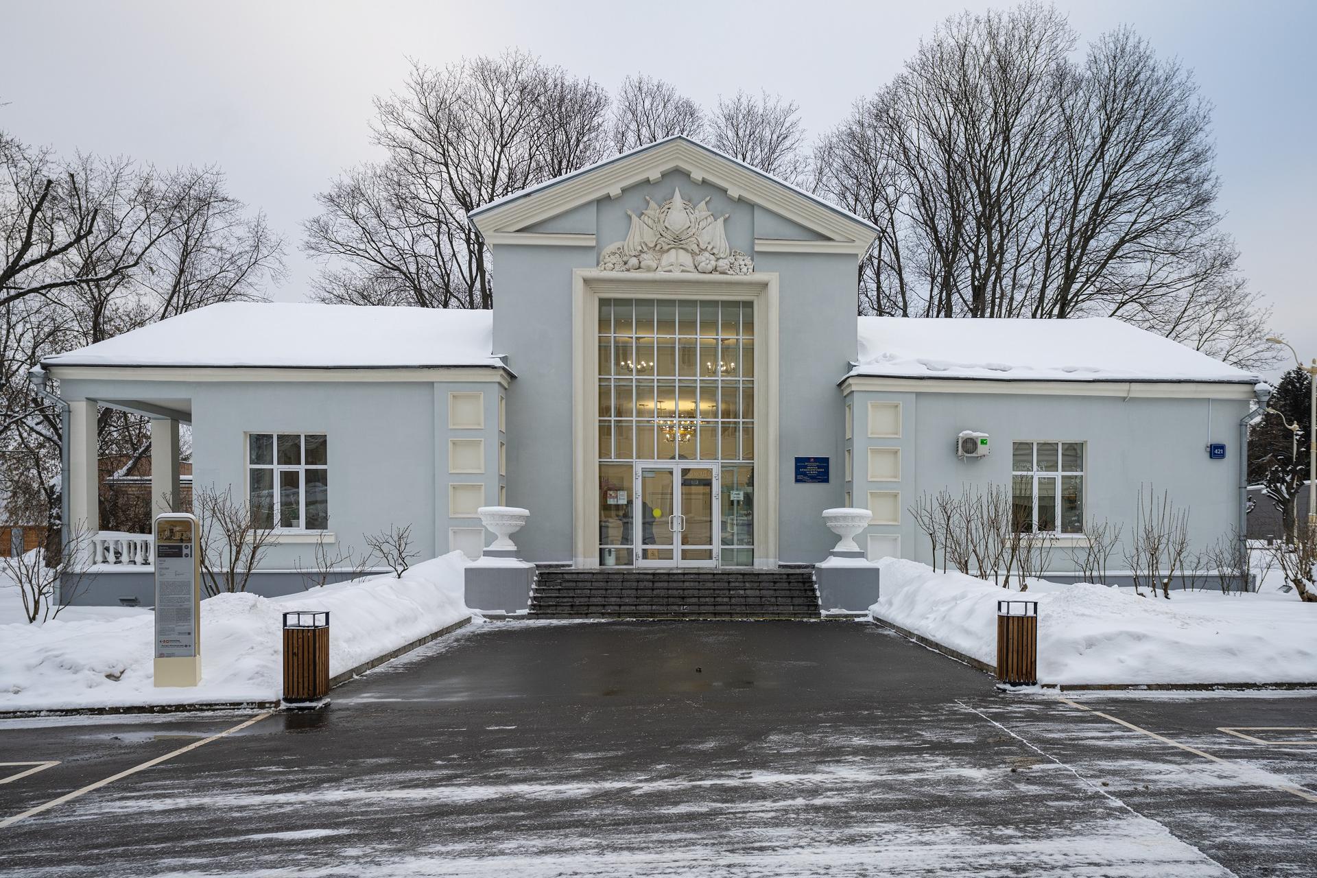 Внешнее оформление здания отсылает нас к традициям русского зодчества XVII века. Павильон предназначался не только для культурных целей, но и для проведения собраний.