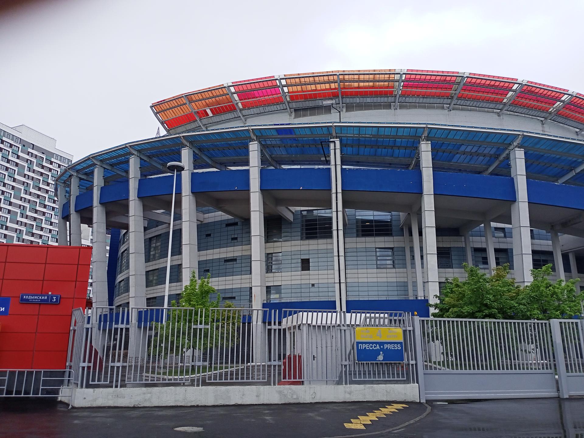 Арена, расположенная в восточной части Ходынского поля, вмещает 14 тыс. зрителей. Общая площадь нового спортивного сооружения составляет 57,5 тыс. кв. метров. В дворце разместились две ледовых арены размером 60 на 30 метров. Имеются тренировочные залы, места для отдыха спортсменов и зрителей, кафе и другие объекты. «Ледовый дворец будет предназначен не только для хоккея. Он будет работать как многоаспектный, многофункциональный комплекс Москвы», — сказал Лужков.