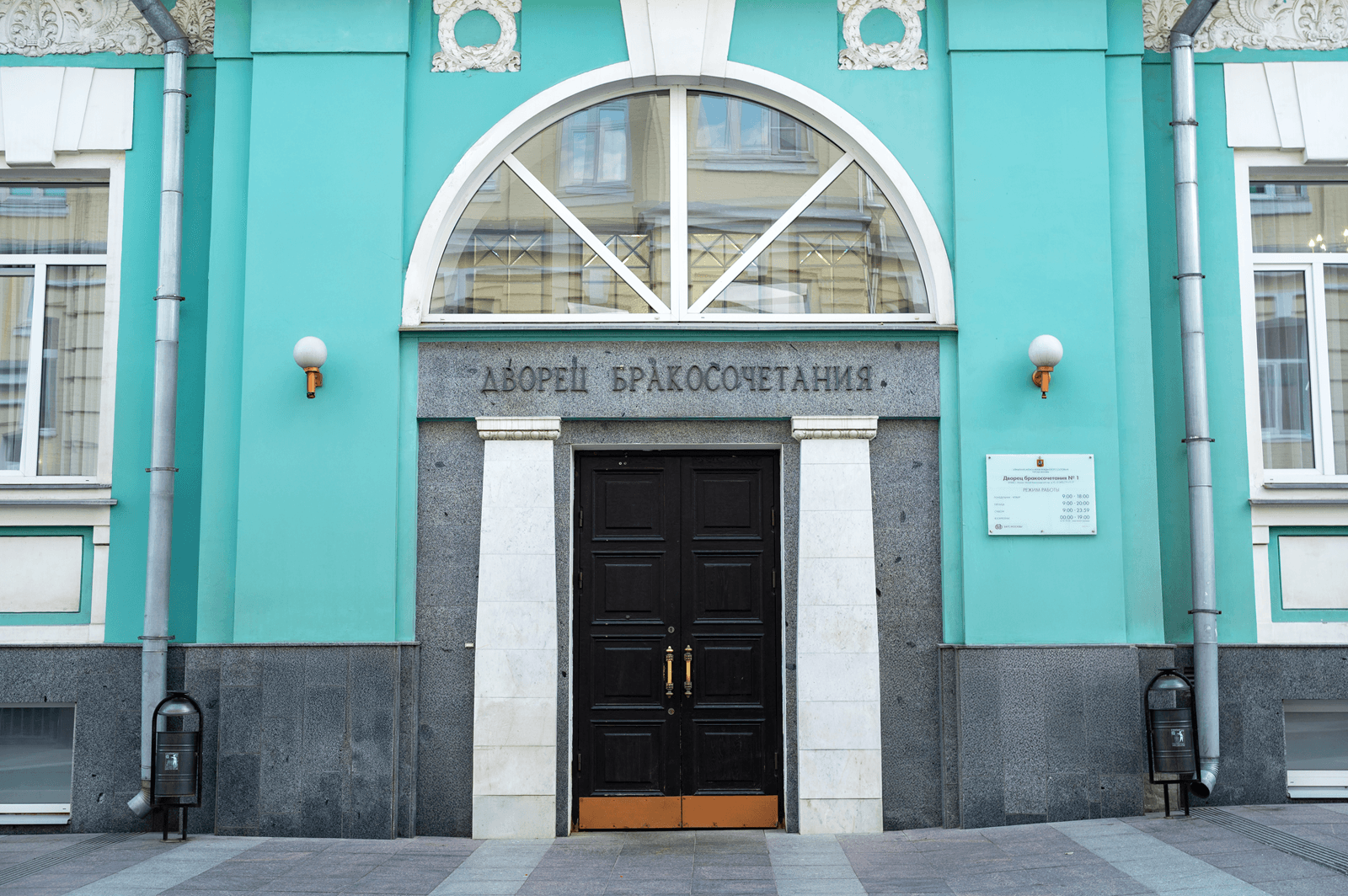 Дворец работает с понедельника по пятницу с 9:00 до 18:00, в субботу с 9:00 до 23:59, в воскресенье с 00:00 до 19:00 (с 6:00 до 10:00 - технический перерыв). Выходные дни: нерабочие праздничные дни. Очереди, в прошлом растягивавшиеся до начала переулка, ныне заменены электронной записью через порталы госуслуг и mos.ru.