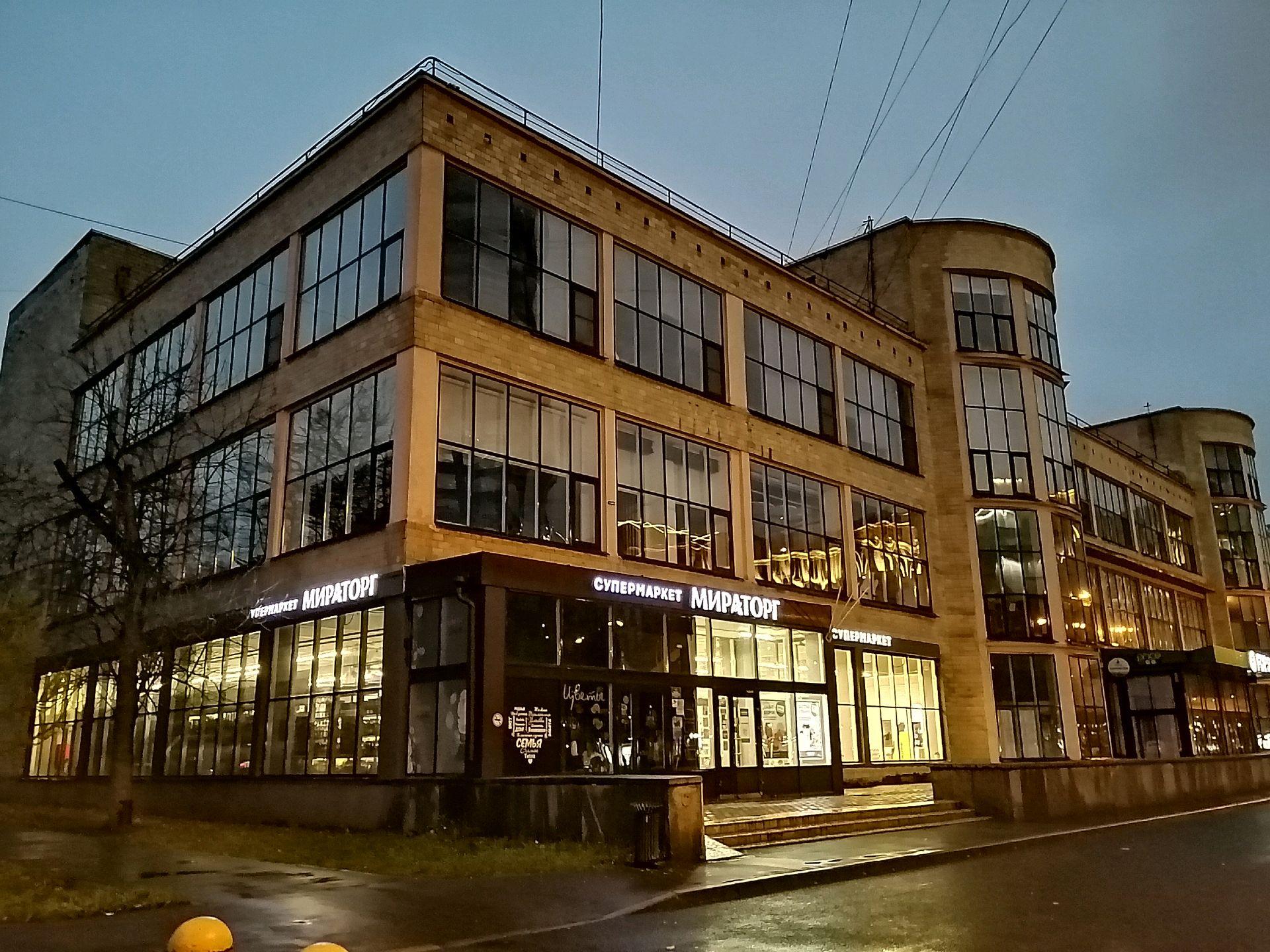 Столовая была рассчитана в основном на рабочих авиазавода, но в ней питались и жители близлежащих домов. Т-образное четырехэтажное кирпичное здание, напоминающее самолет, состоит из главного корпуса, выходящего фасадом в 1-й Боткинский проезд, и дворового объема.